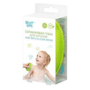 Roxy Kids губка для купания детская силиконовая антибактериальная массажная овальная цвет салатовый 0 мес+
