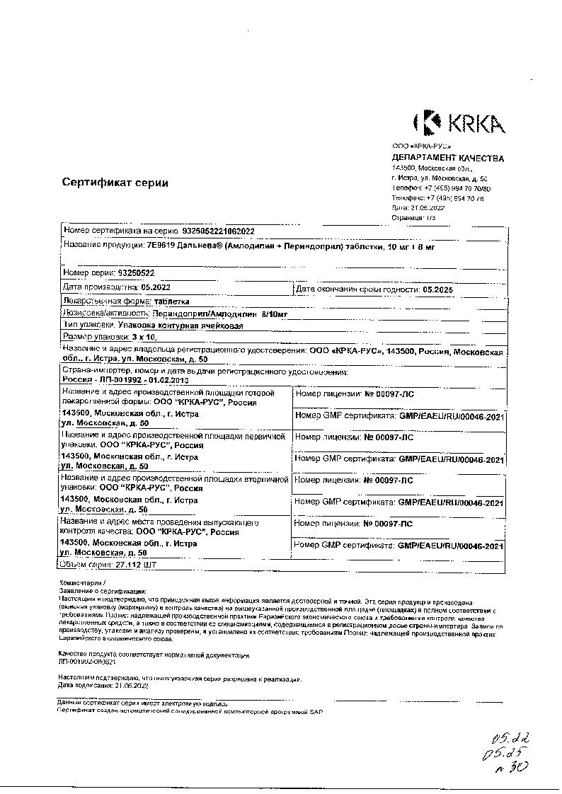 Ко-Дальнева 5 мг + 1,25 мг + 4 мг 30 шт таблетки