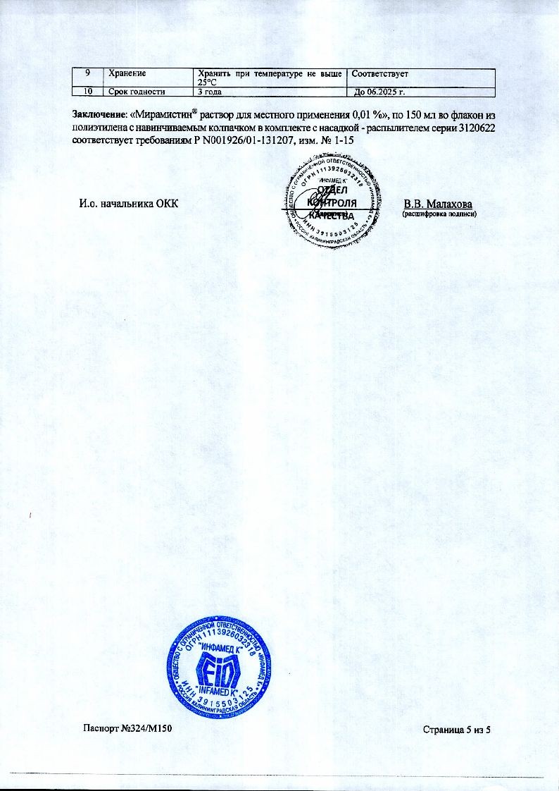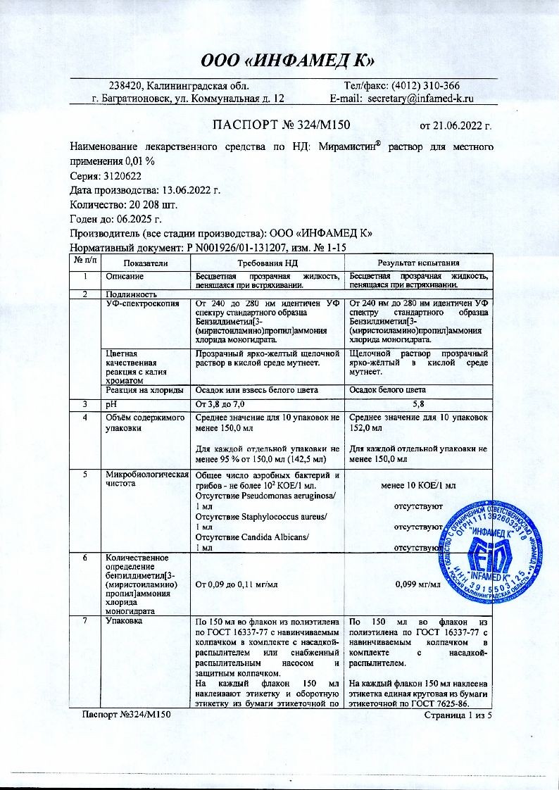 Мирамистин 0,01 % 150 мл раствор для местного применения в комплекте с насадкой-распылителем