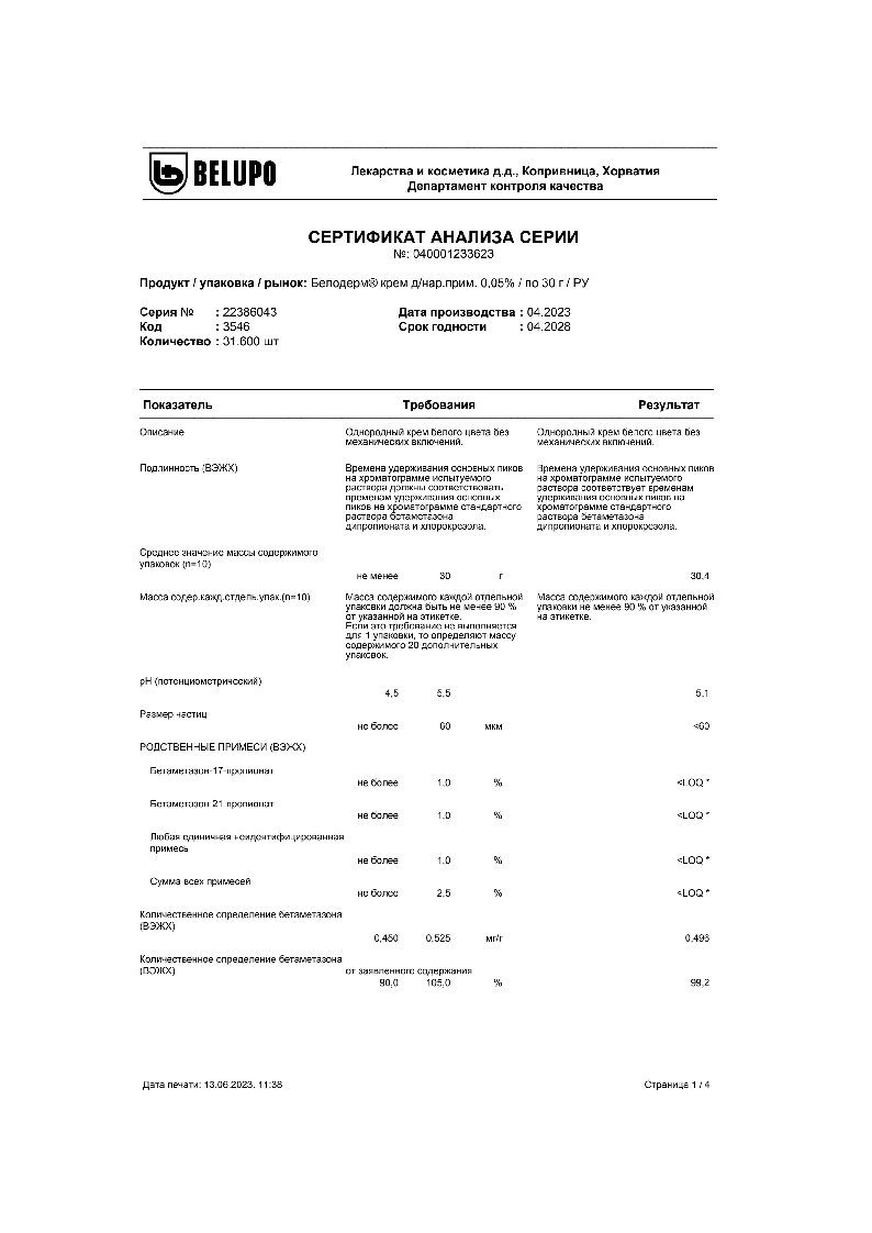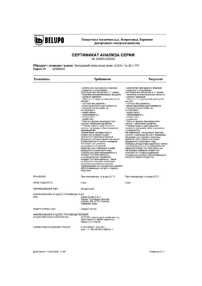 Целестодерм В с Гарамицином 0,1% 30 г крем для наружного применения