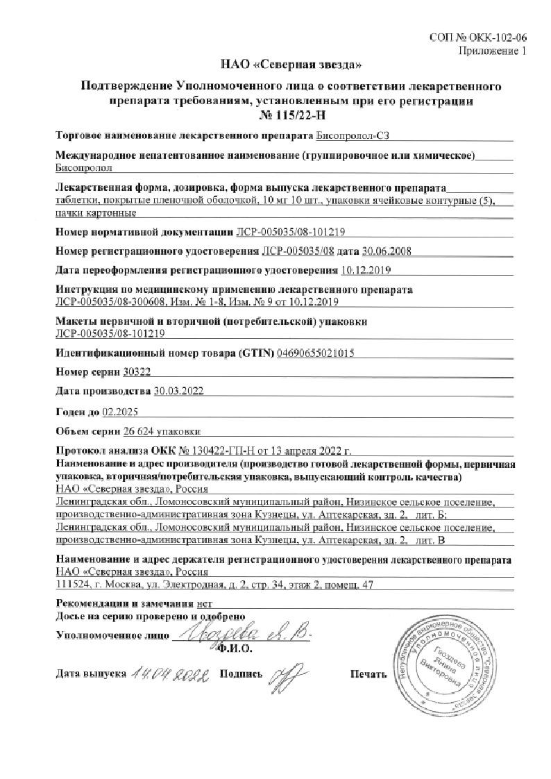 В корзинуБисопролол-Алси 2,5 мг 60 шт таблетки
