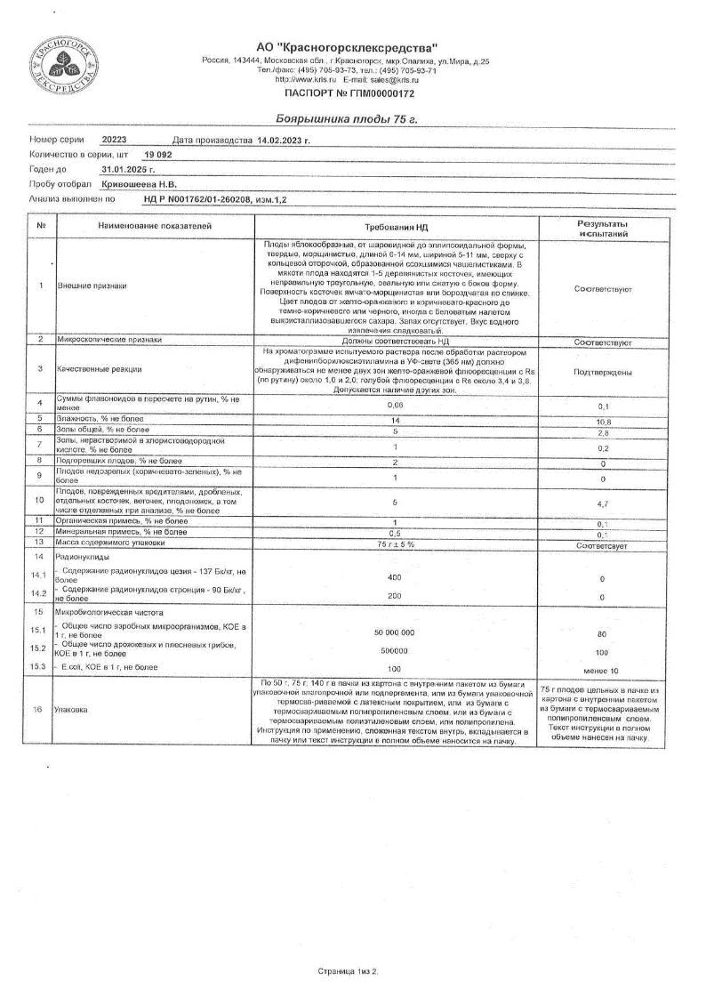 Боярышник плоды 3 г 20 шт фильтр-пакеты