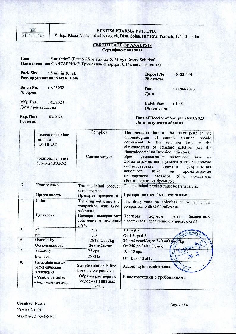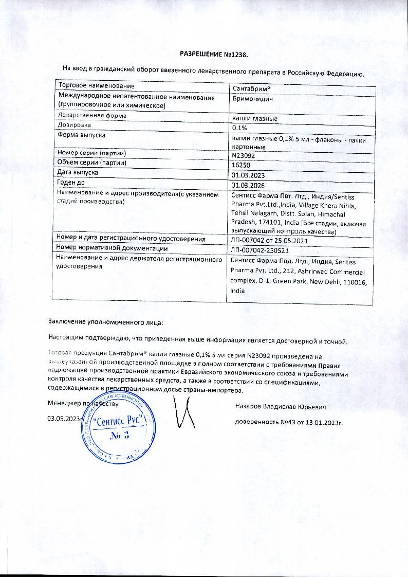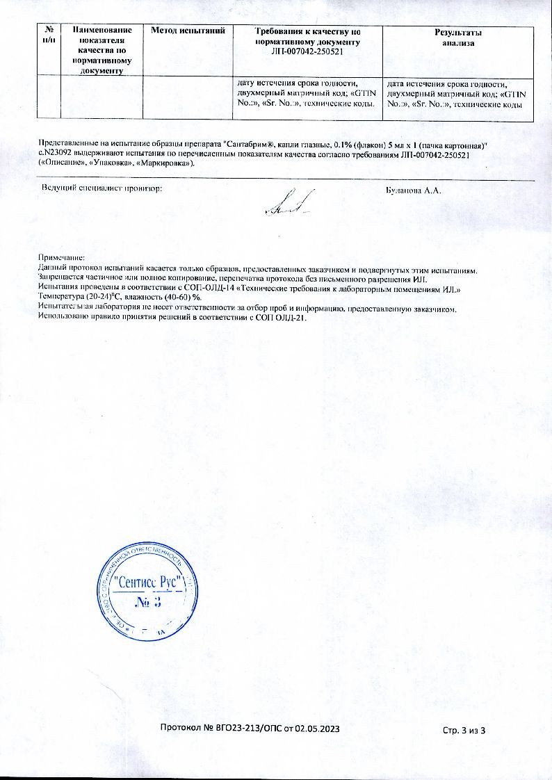 Сантабрим 0,1% 5 мл глазные капли флакон