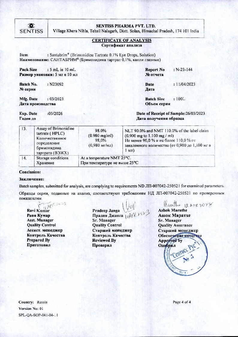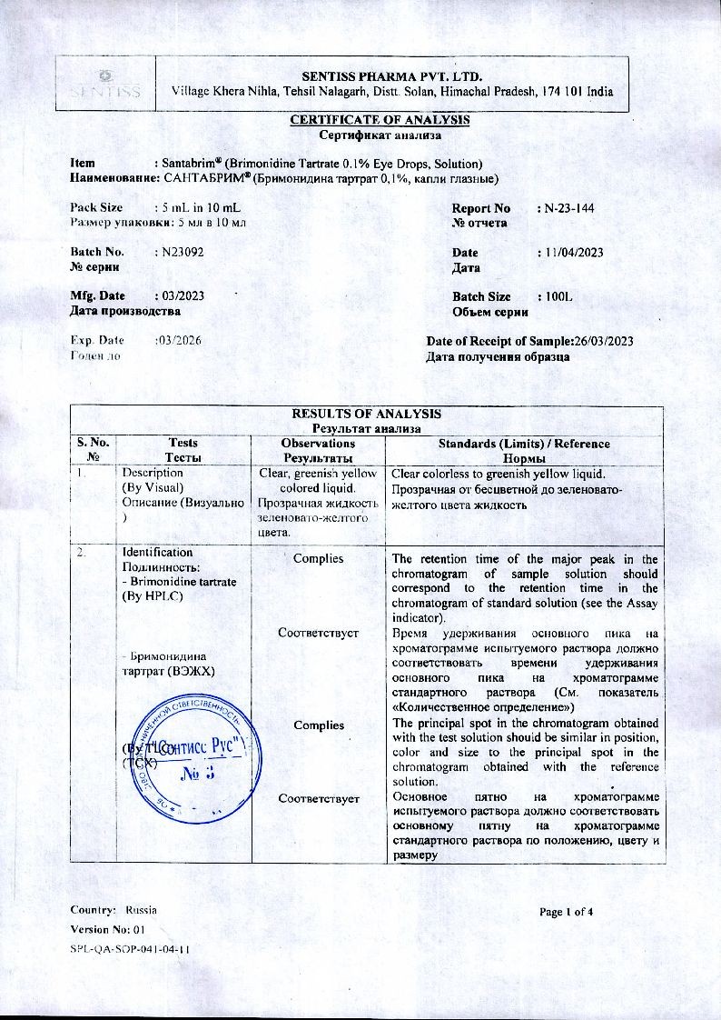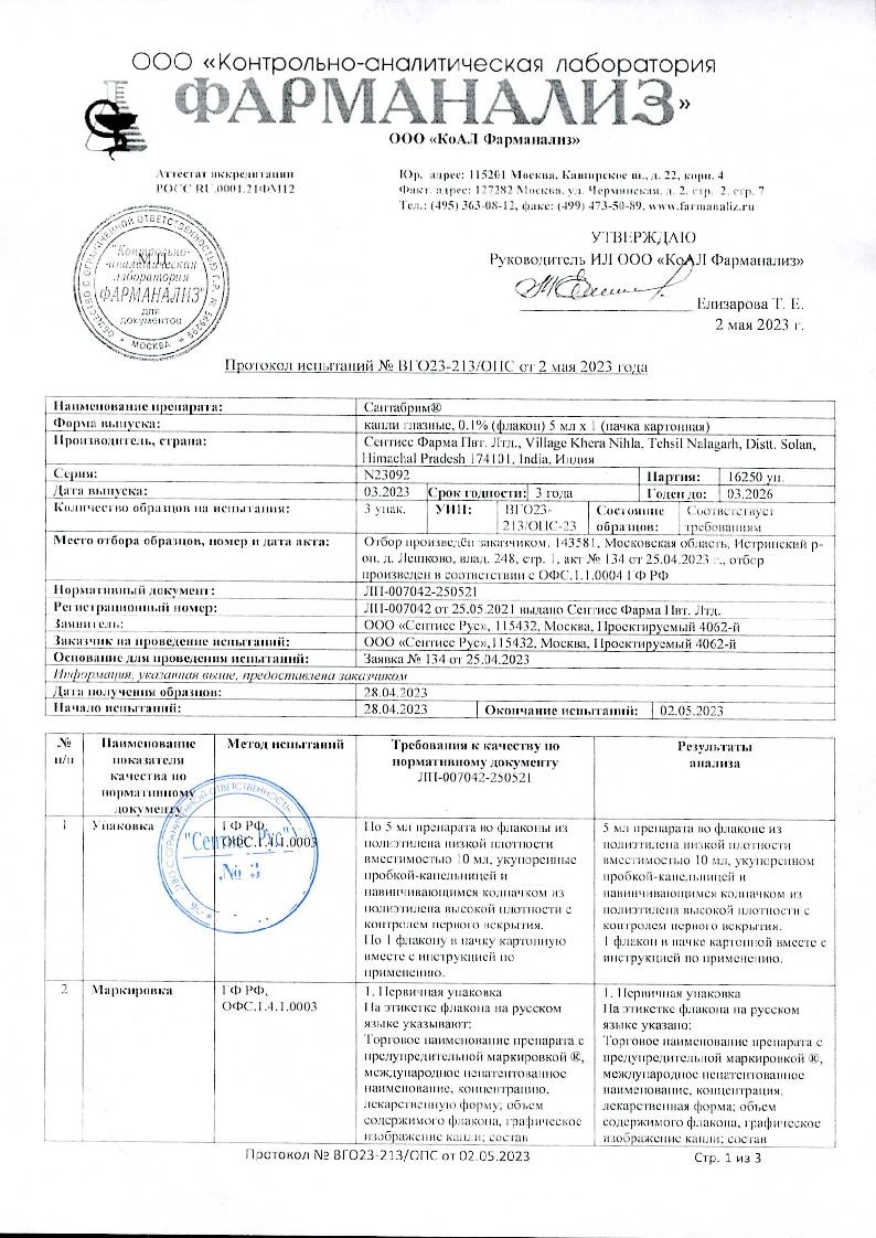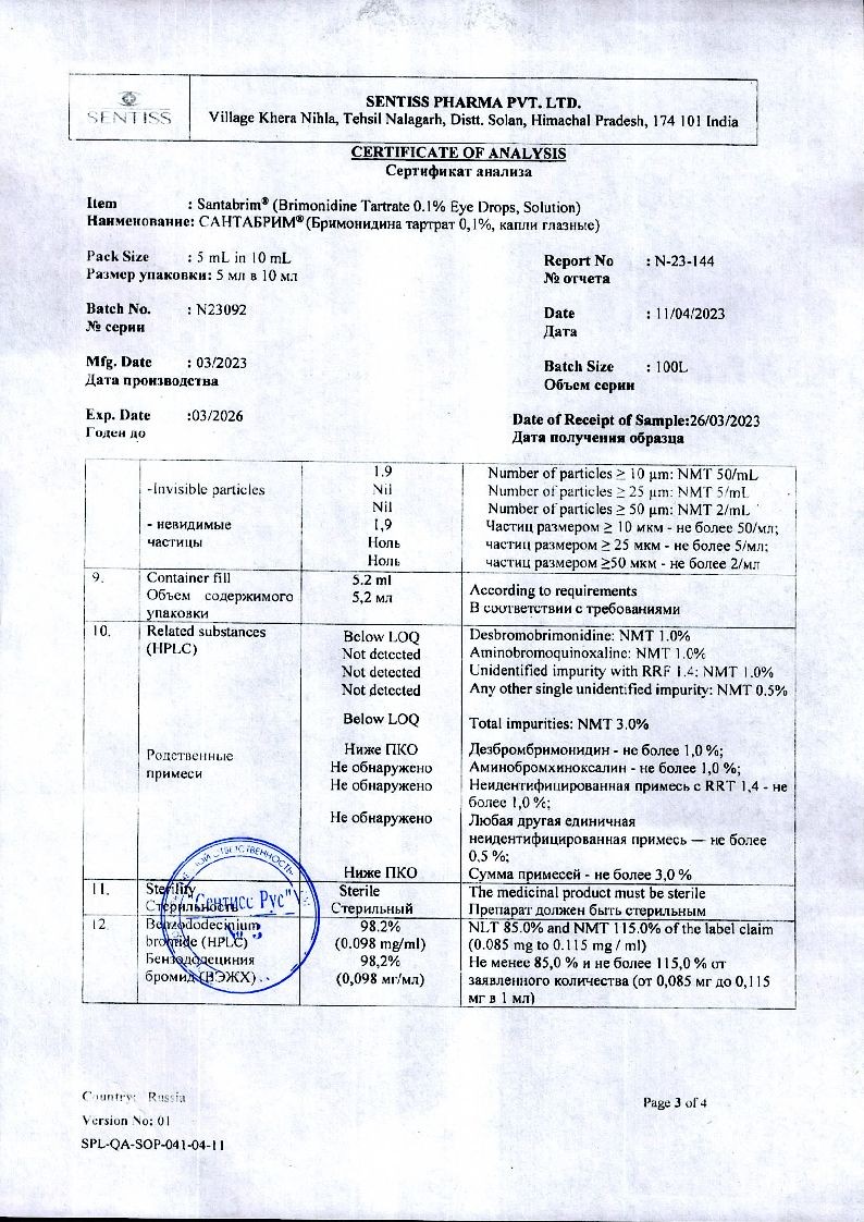 Сантабрим 0,1% 5 мл глазные капли флакон