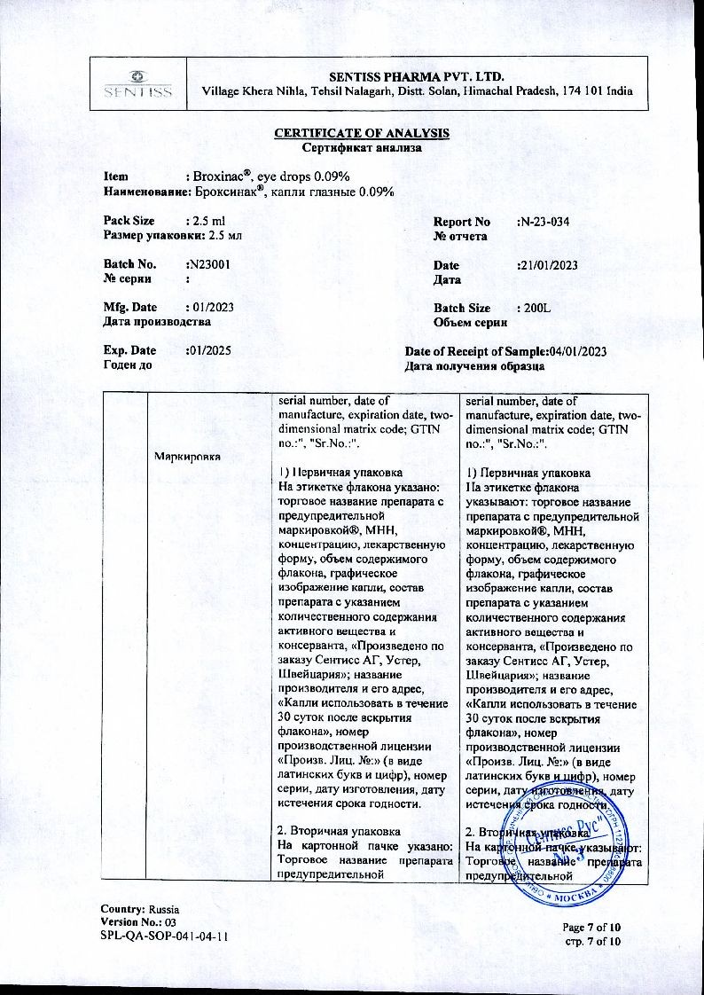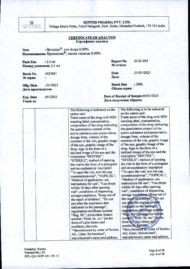 Бромфенак-СЗ 0,09 % 5 мл капли глазные