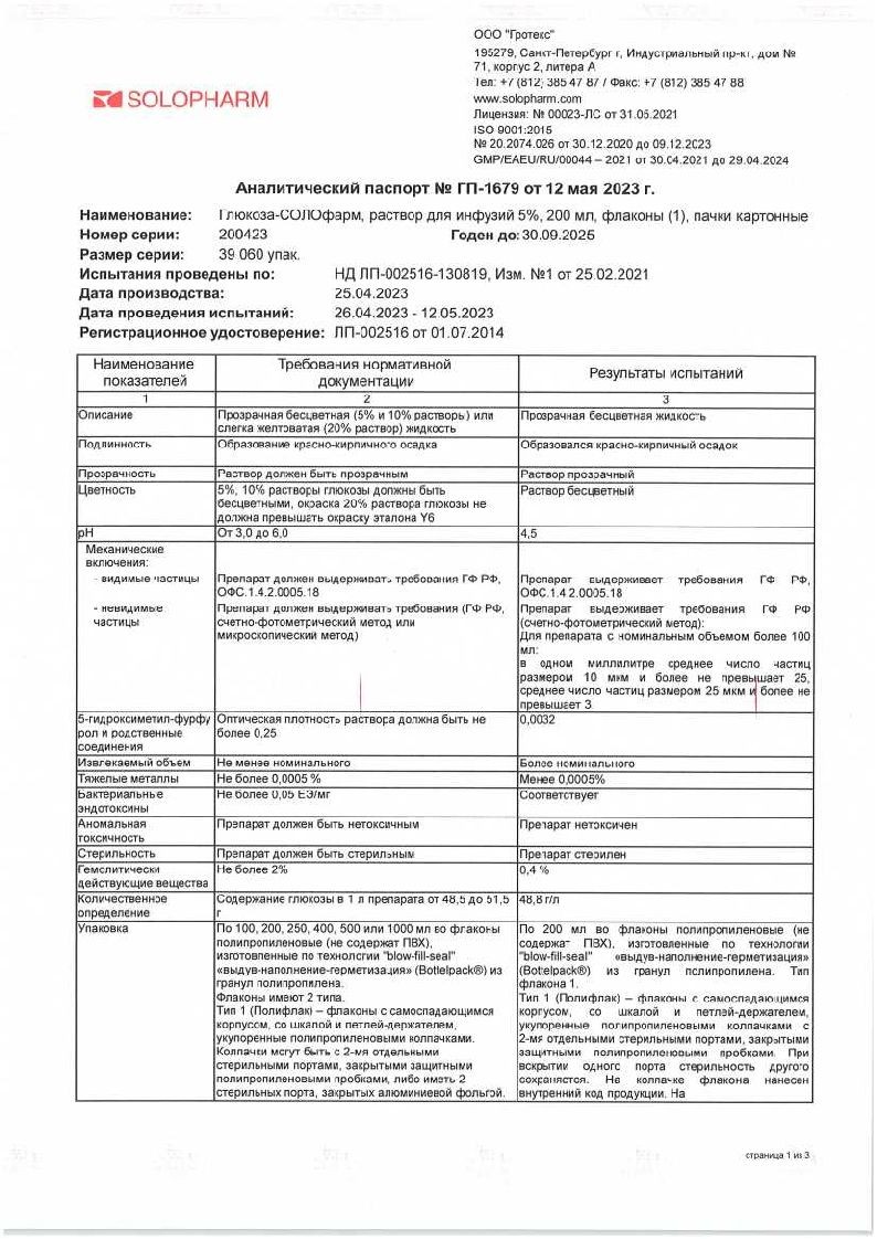 Глюкоза 5 % 200 мл 32 шт раствор для инфузий