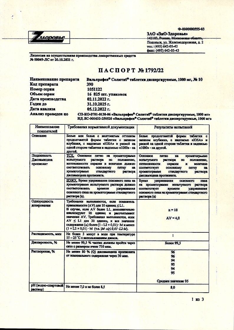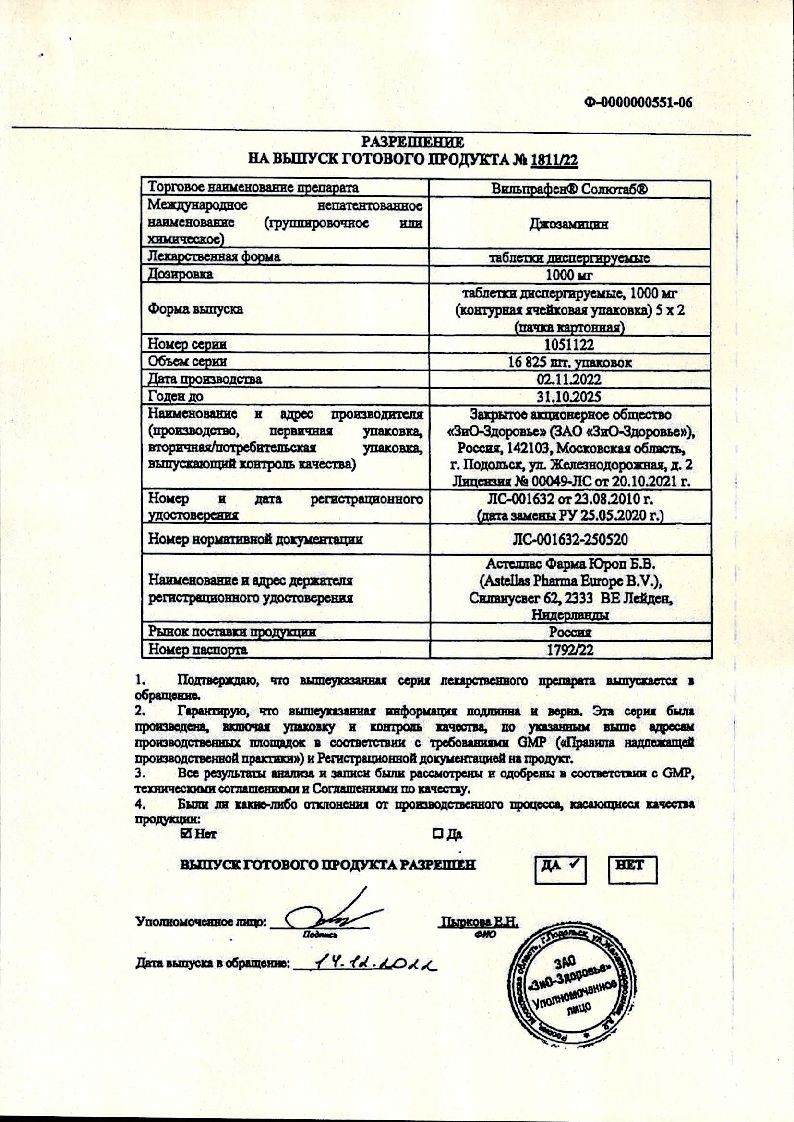 Вильпрамицин САР 1 г 10 шт таблетки диспергируемые