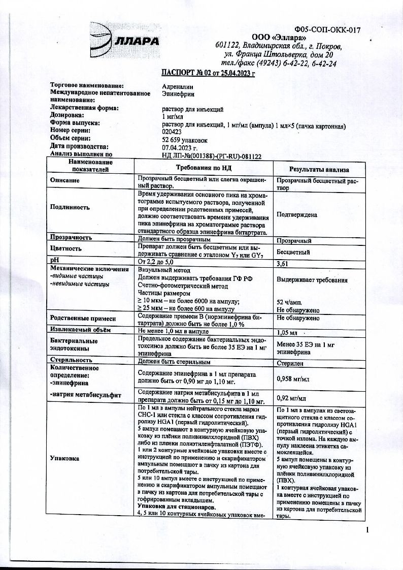 Адреналин 1 мг/мл 5 шт 1 мл ампулы раствор для инъекций