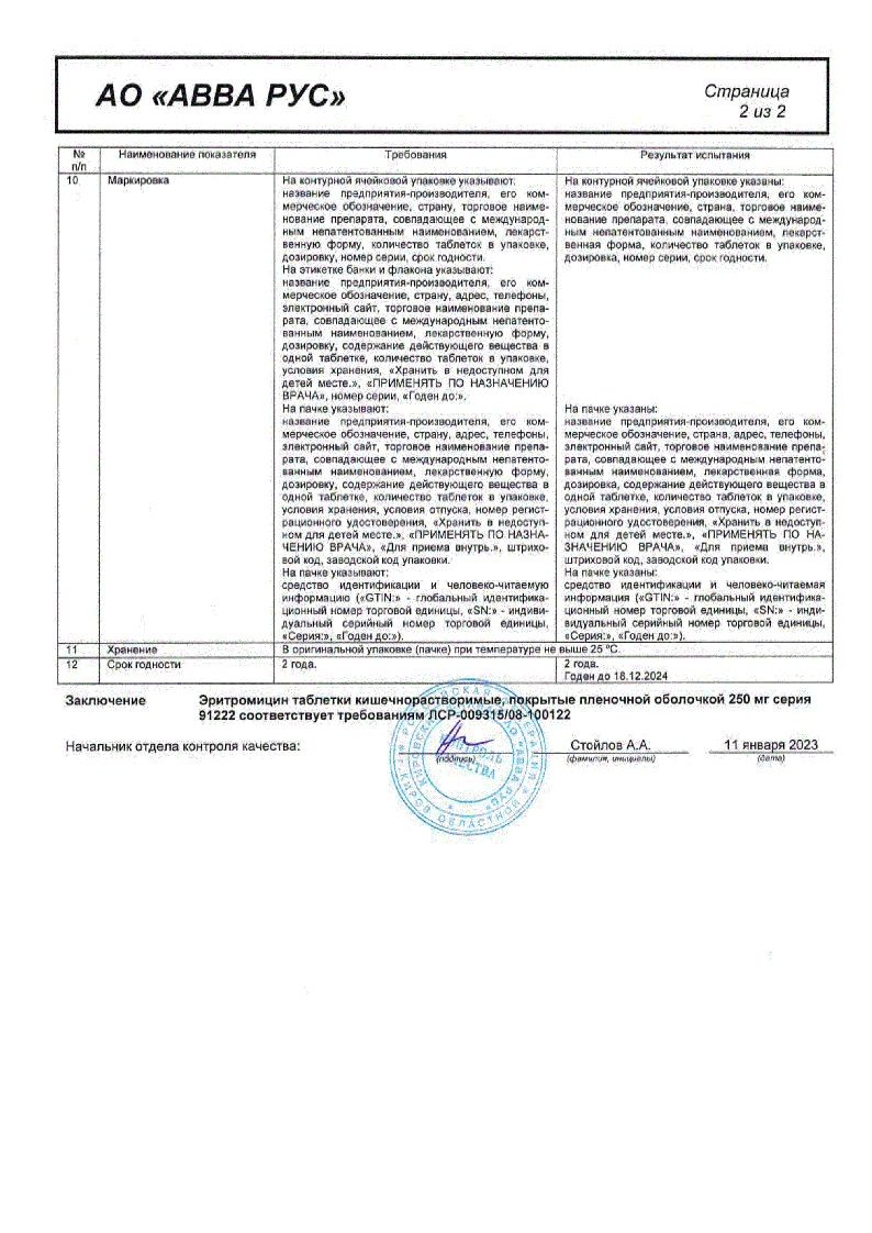 Эритромицин 250 мг 20 шт таблетки кишечнорастворимые покрытые пленочной оболочкой