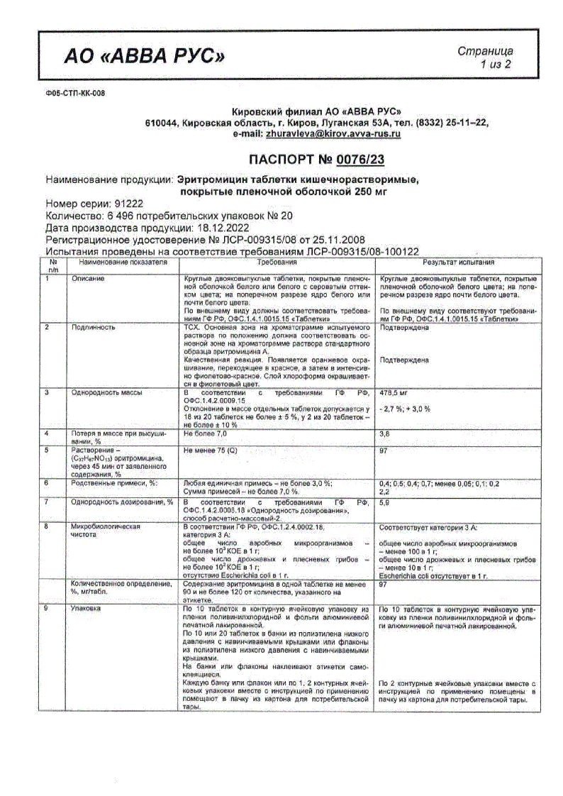 Эритромицин 250 мг 20 шт таблетки покрытые оболочкой