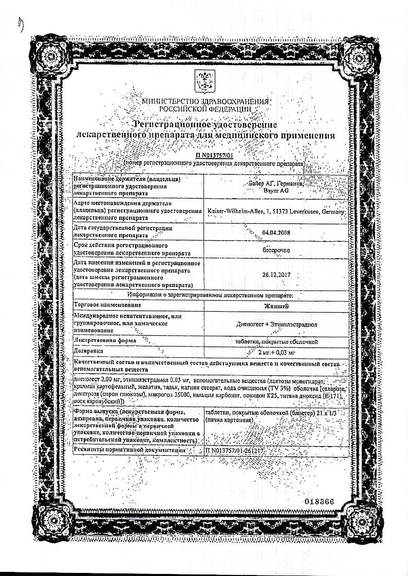Жанин 2 мг + 0,03 мг 21 шт таблетки покрытые оболочкой