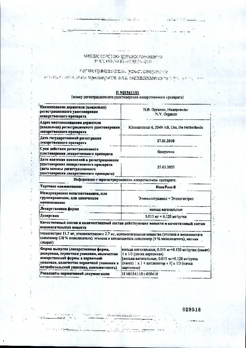 НоваРинг 15 мкг + 120 мкг 1 шт кольцо вагинальное с аппликатором