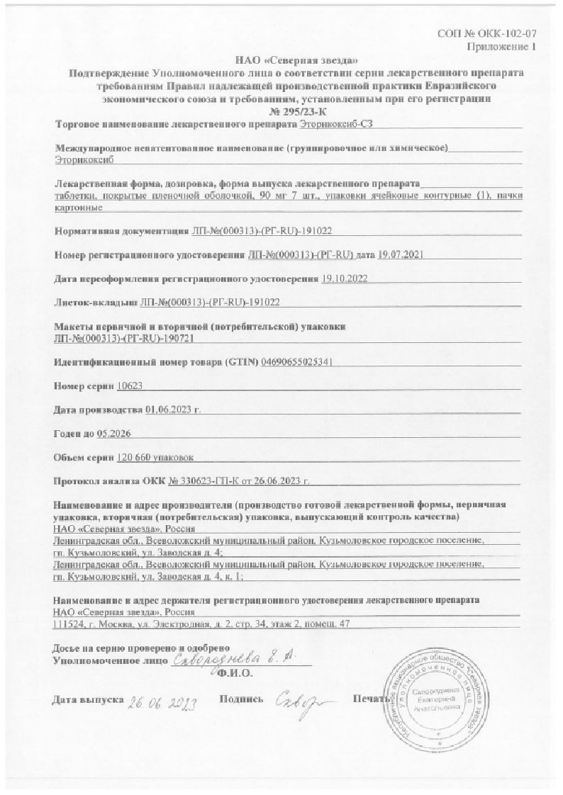 Эторикоксиб-СЗ 90 мг 7 шт таблетки покрытые пленочной оболочкой