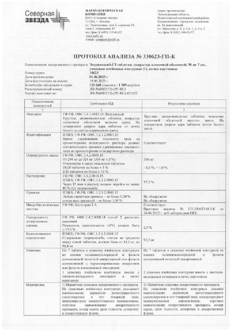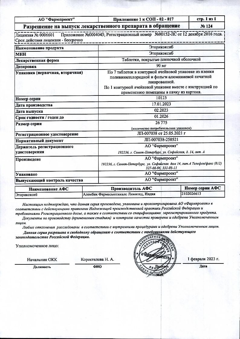 Эторикоксиб 90 мг 7 шт таблетки покрытые пленочной оболочкой