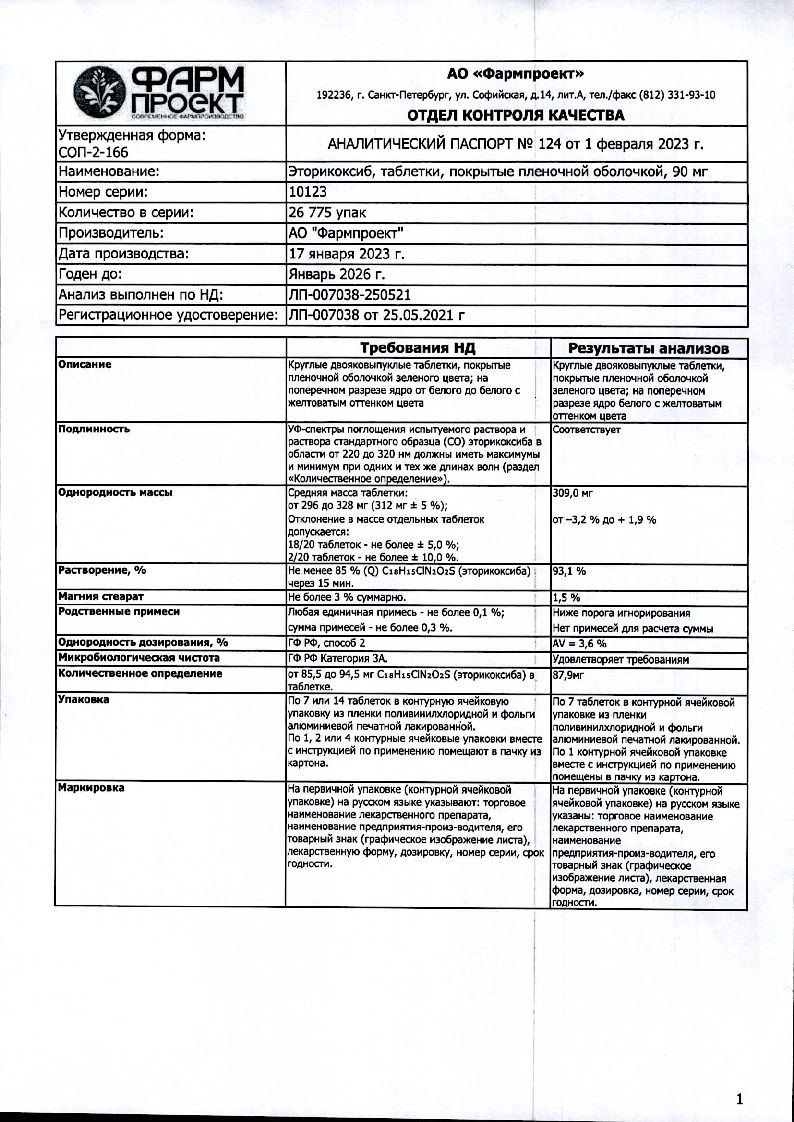 Эторикоксиб 90 мг 28 шт таблетки покрытые пленочной оболочкой