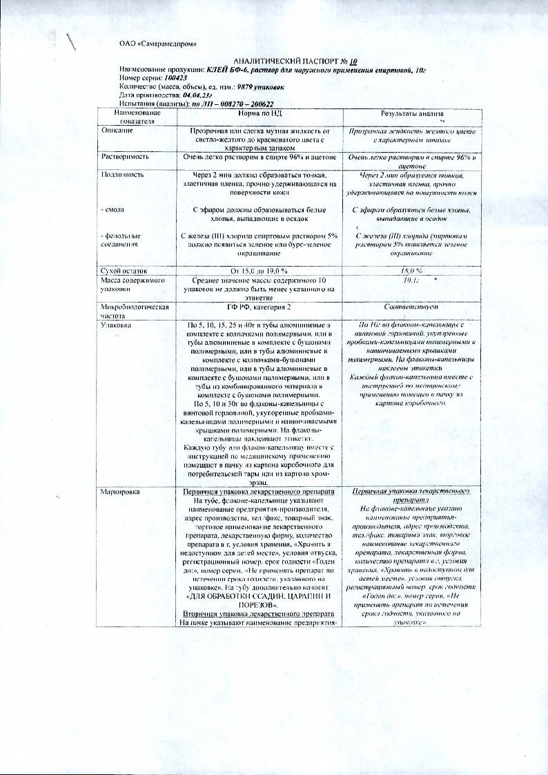 Клей Медицинский БФ-6 10 г раствор для наружного применения спиртовой туба