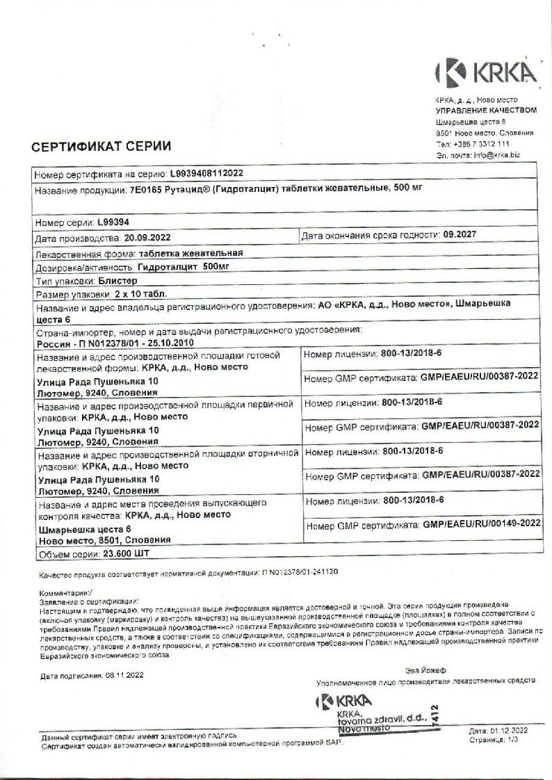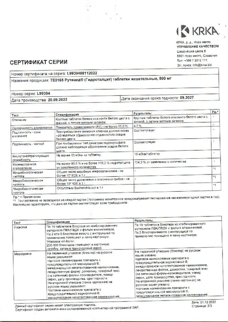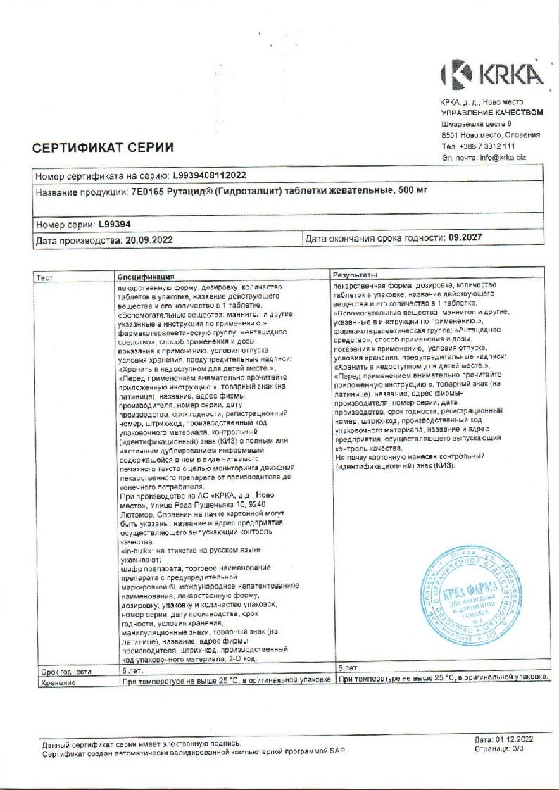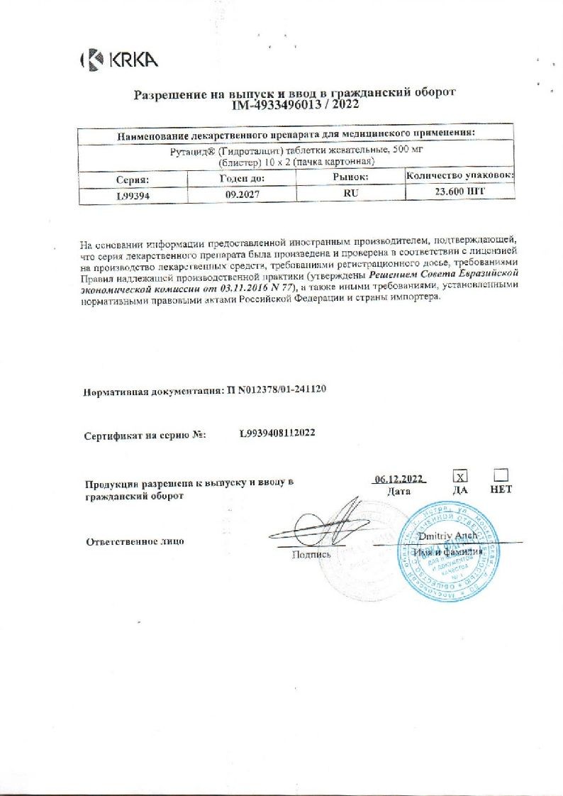 Рутацид 500 мг 20 шт таблетки жевательные
