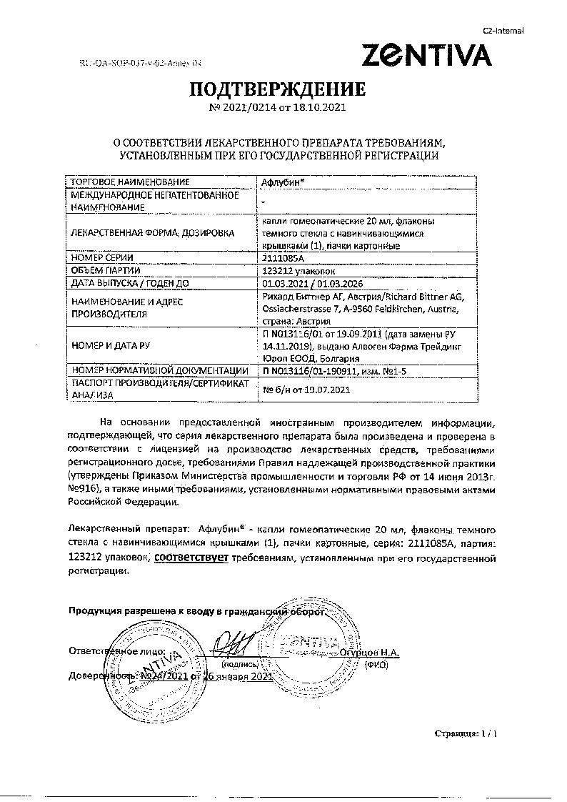Афлубин 20 мл капли гомеопатические