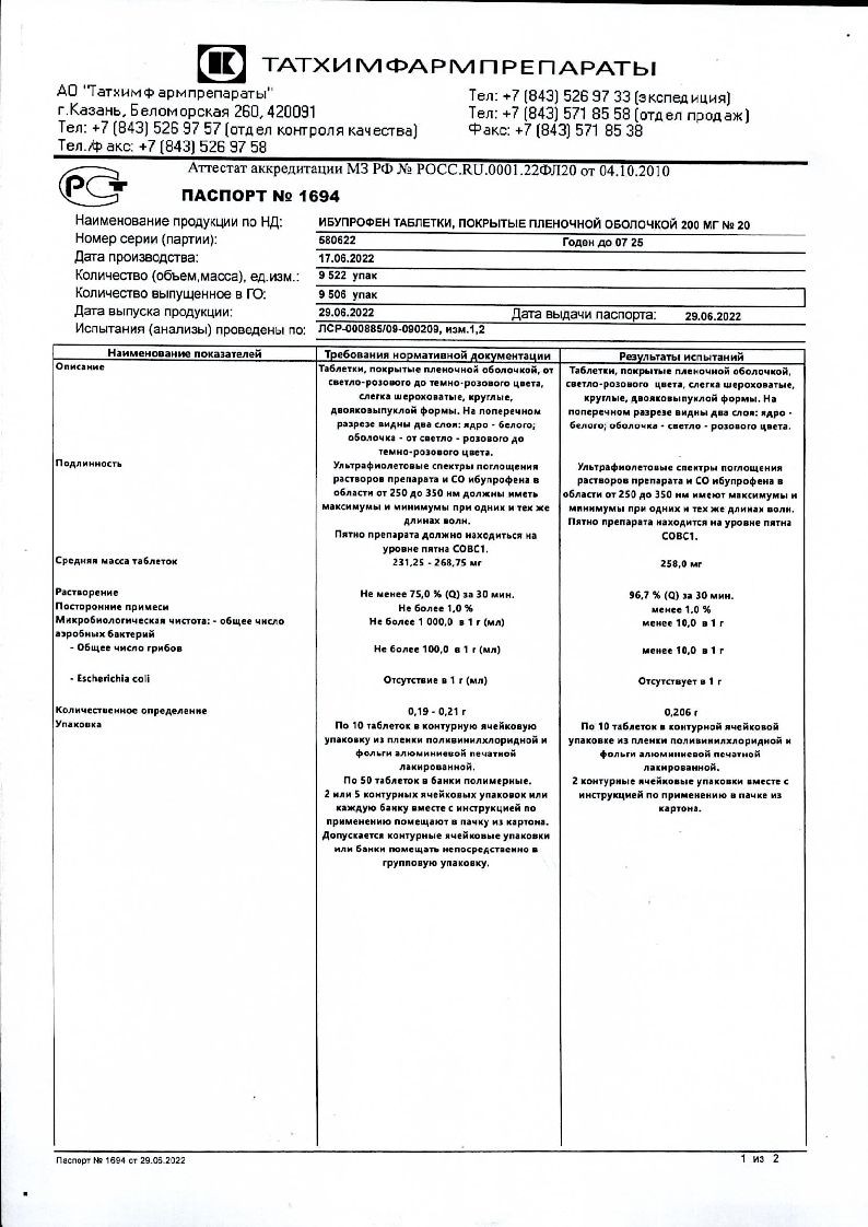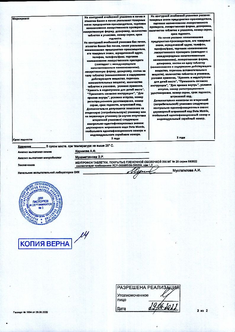 Ибупрофен 200 мг 20 шт таблетки покрытые пленочной оболочкой