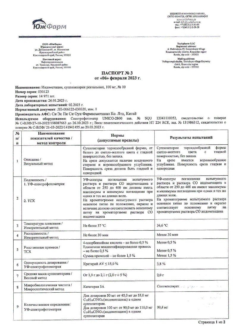 Индометацин 100 мг 10 шт суппозитории ректальные