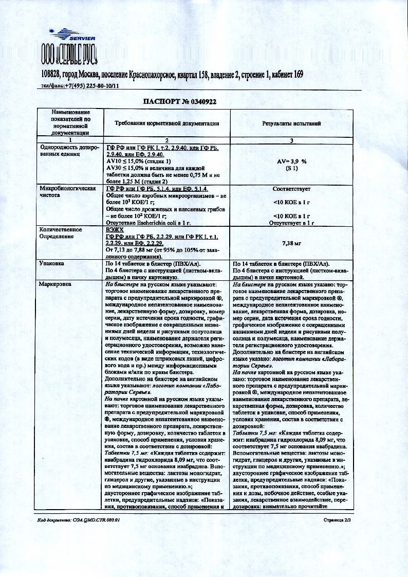 В корзинуИвабрадин 7,5 мг 56 шт таблетки покрытые пленочной оболочкой