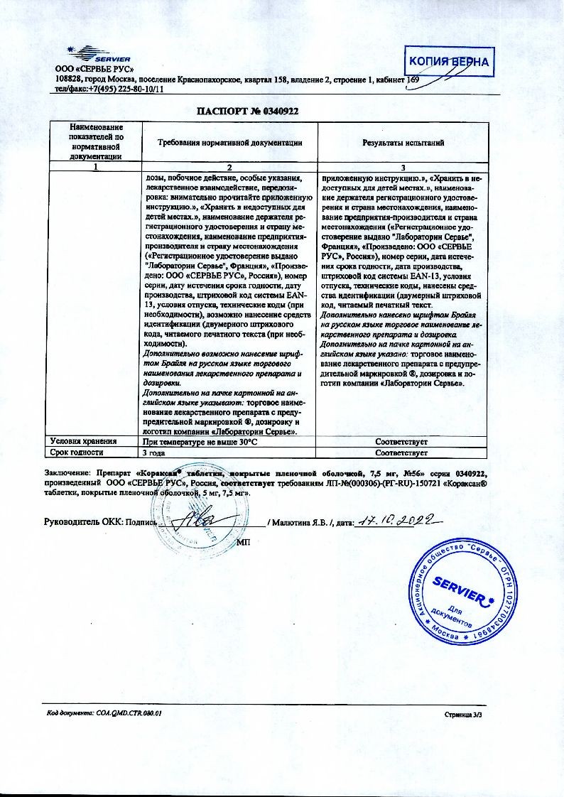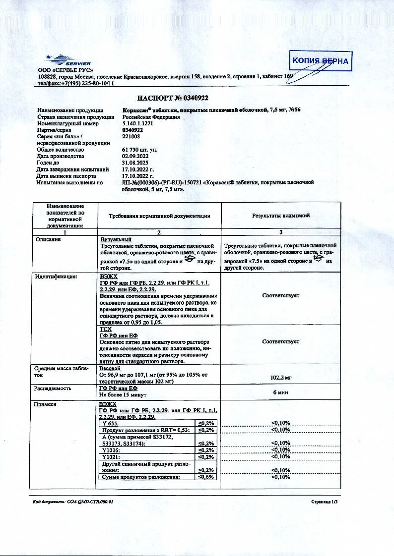 Кораксан 7,5 мг 56 шт таблетки покрытые пленочной оболочкой
