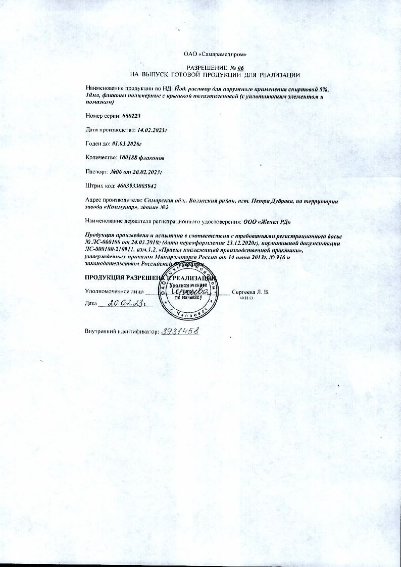 Йод 5 % 25 мл раствор спиртовой флакон полимерный