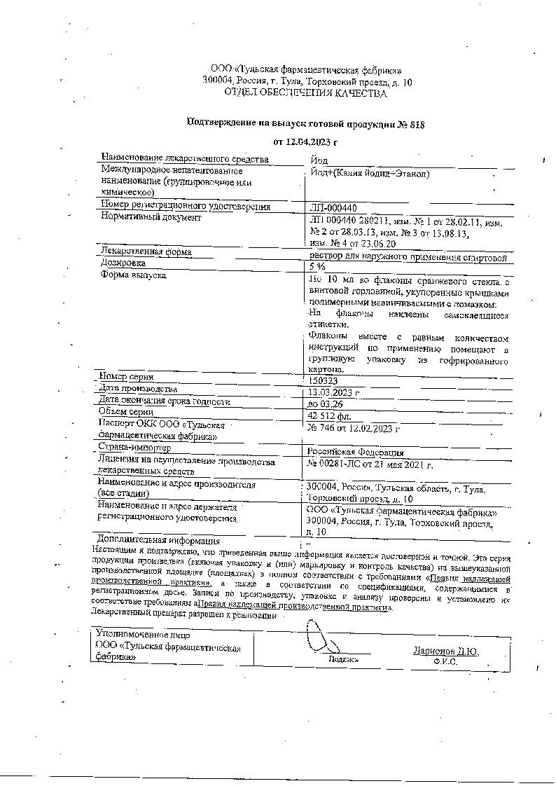 Йод 5 % 25 мл раствор для наружного применения спиртовой