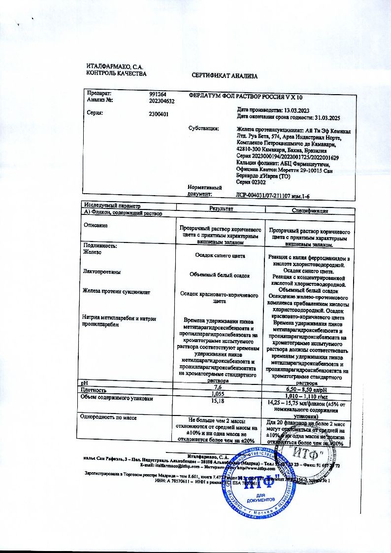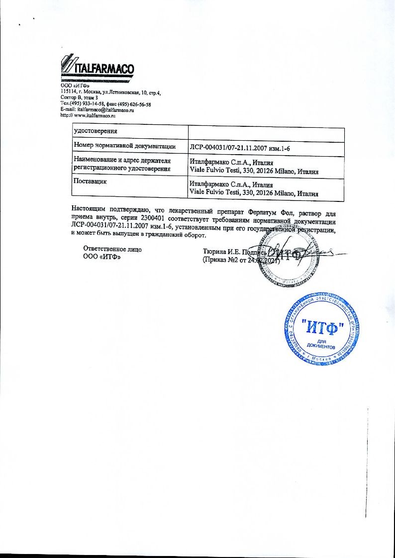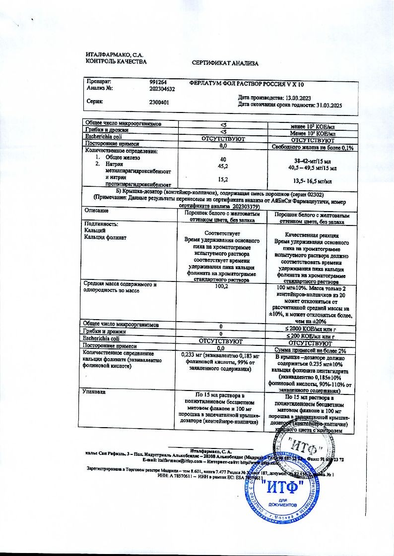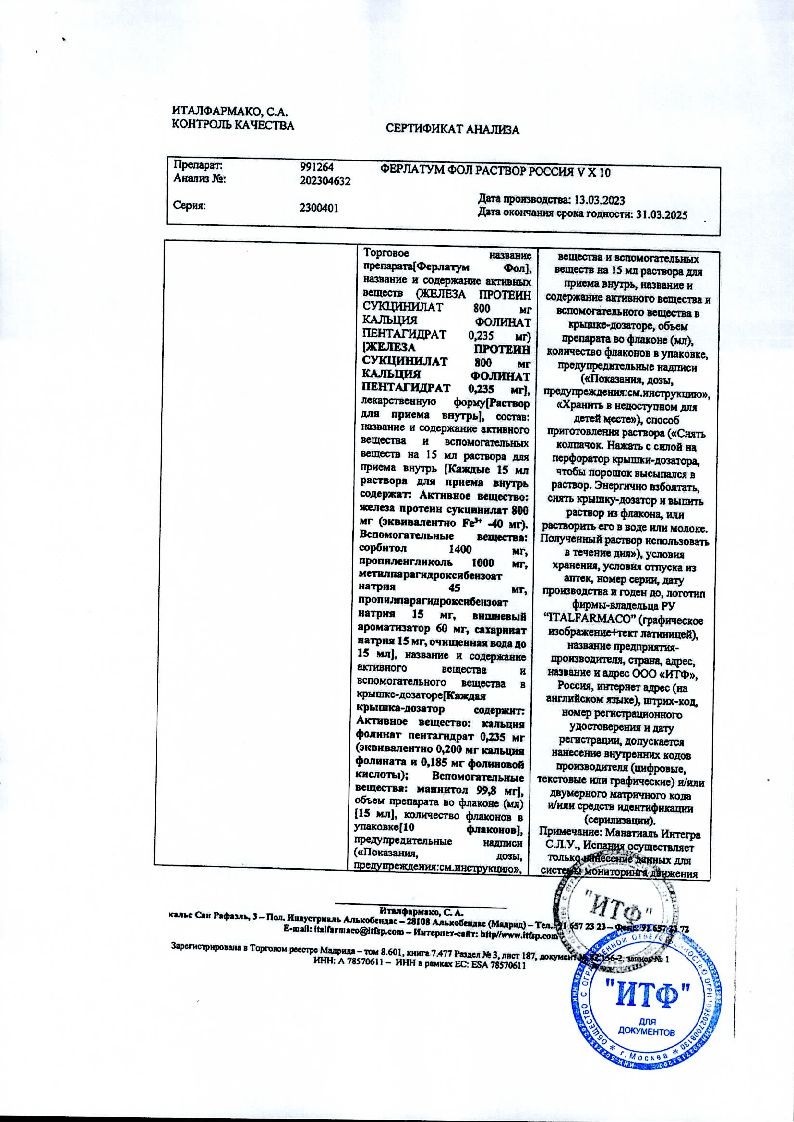 Ферлатум Фол 15 мл 10 шт раствор для внутреннего применения