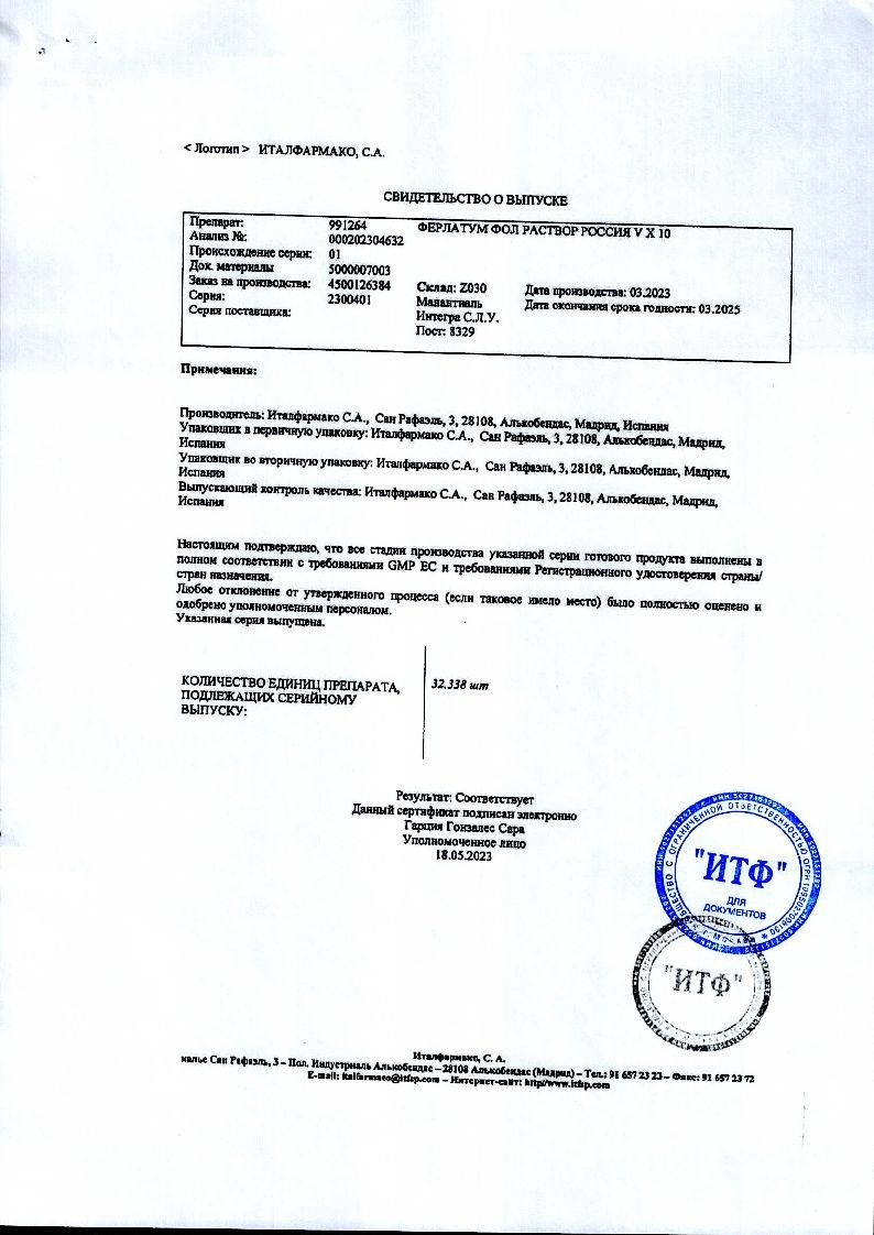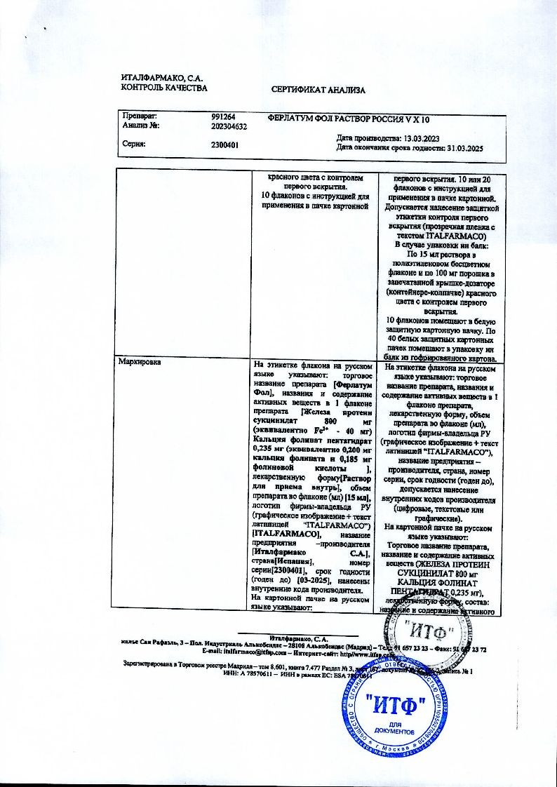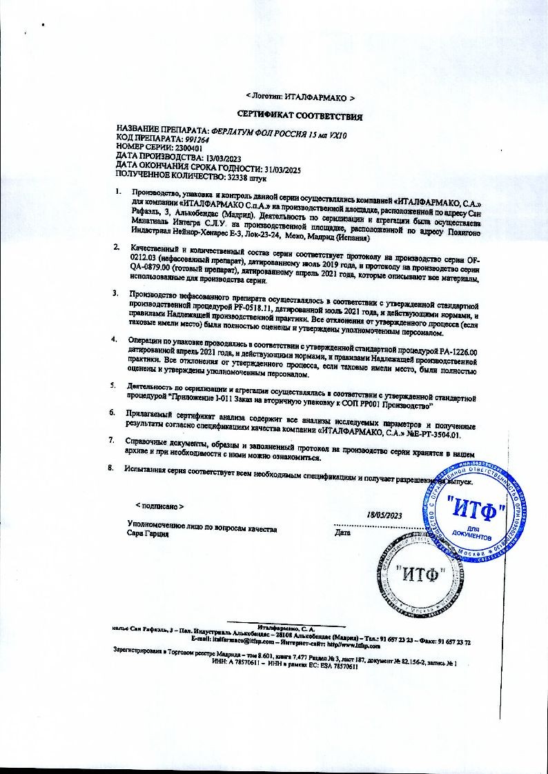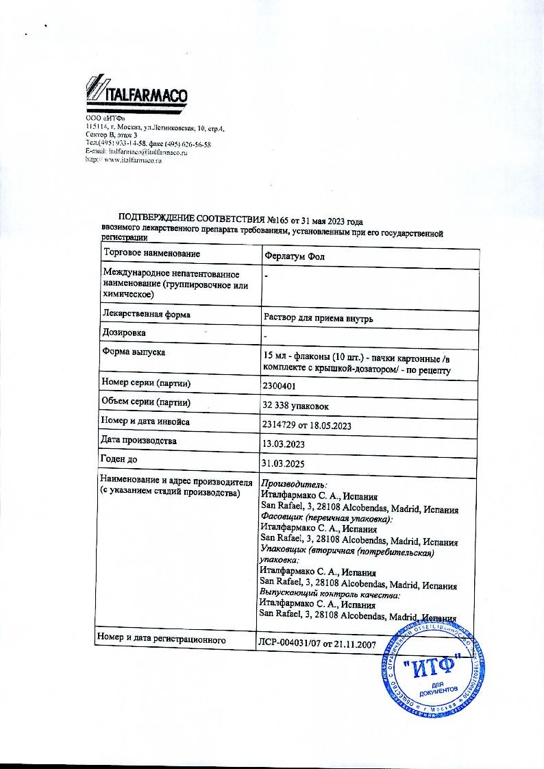 Ферлатум Фол 15 мл 10 шт раствор для внутреннего применения