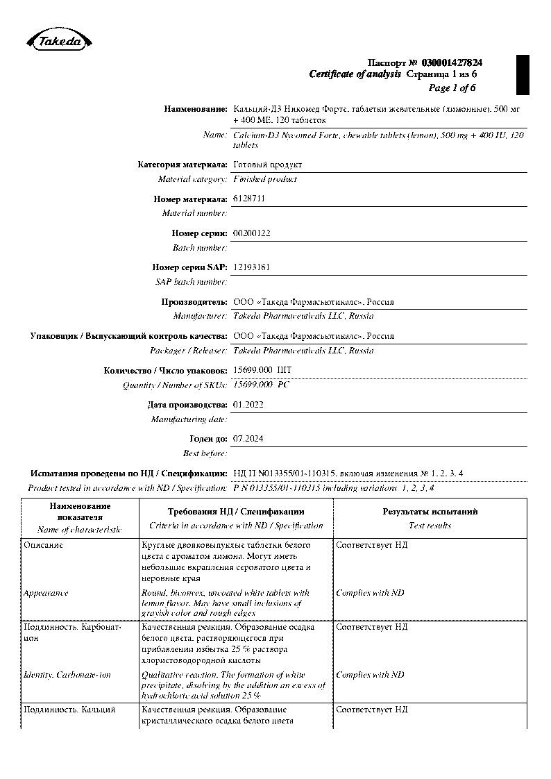 Кальций-Д3 Никомед Форте 120 шт таблетки жевательные лимон