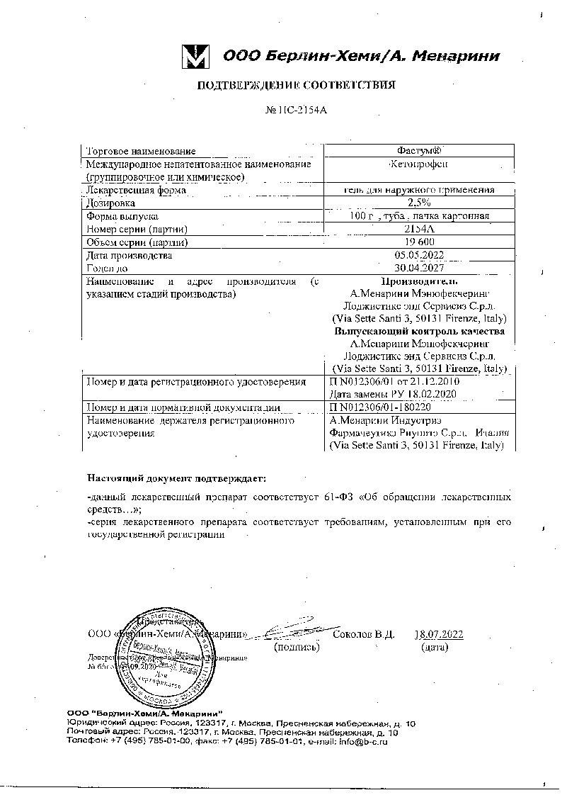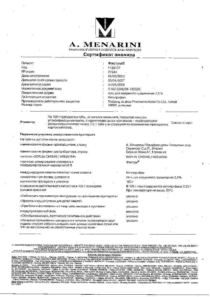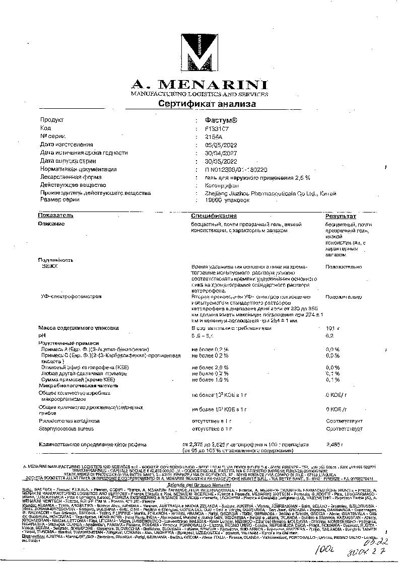 Фастум 2,5 % 100 г гель для наружного применения
