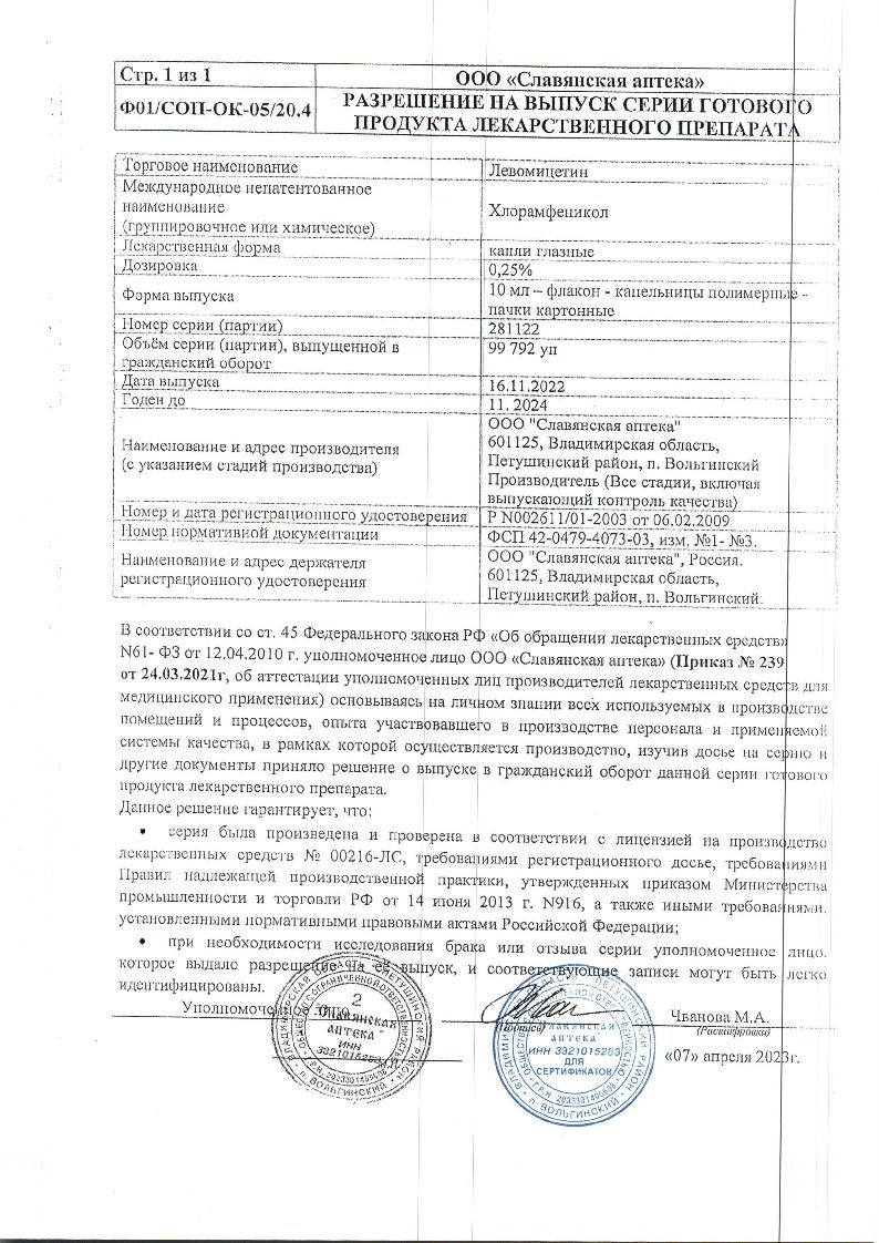 Левомицетин 1% 25 мл раствор для наружного применения спиртовой флакон