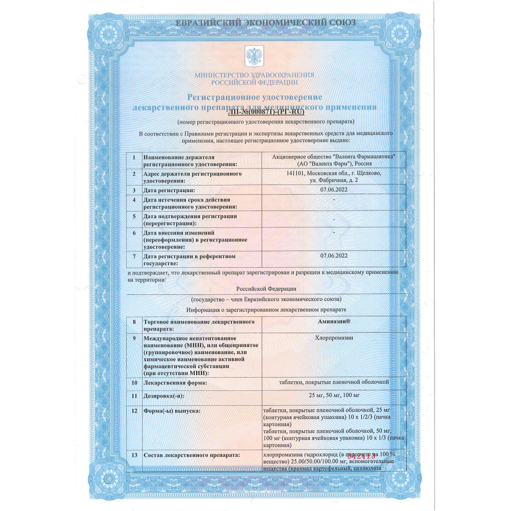 Аминазин 100 мг 10 шт таблетки покрытые пленочной оболочкой