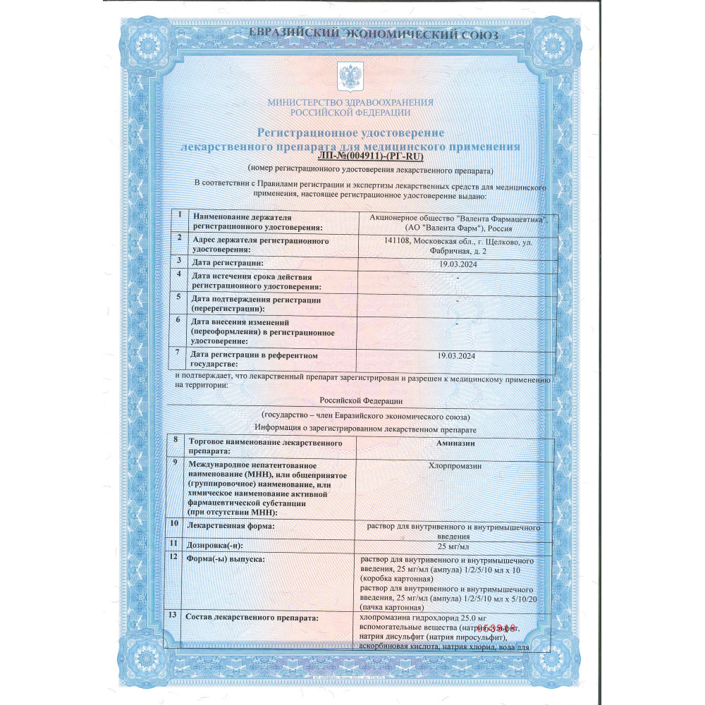 Аминазин 25 мг 10 шт таблетки покрытые пленочной оболочкой