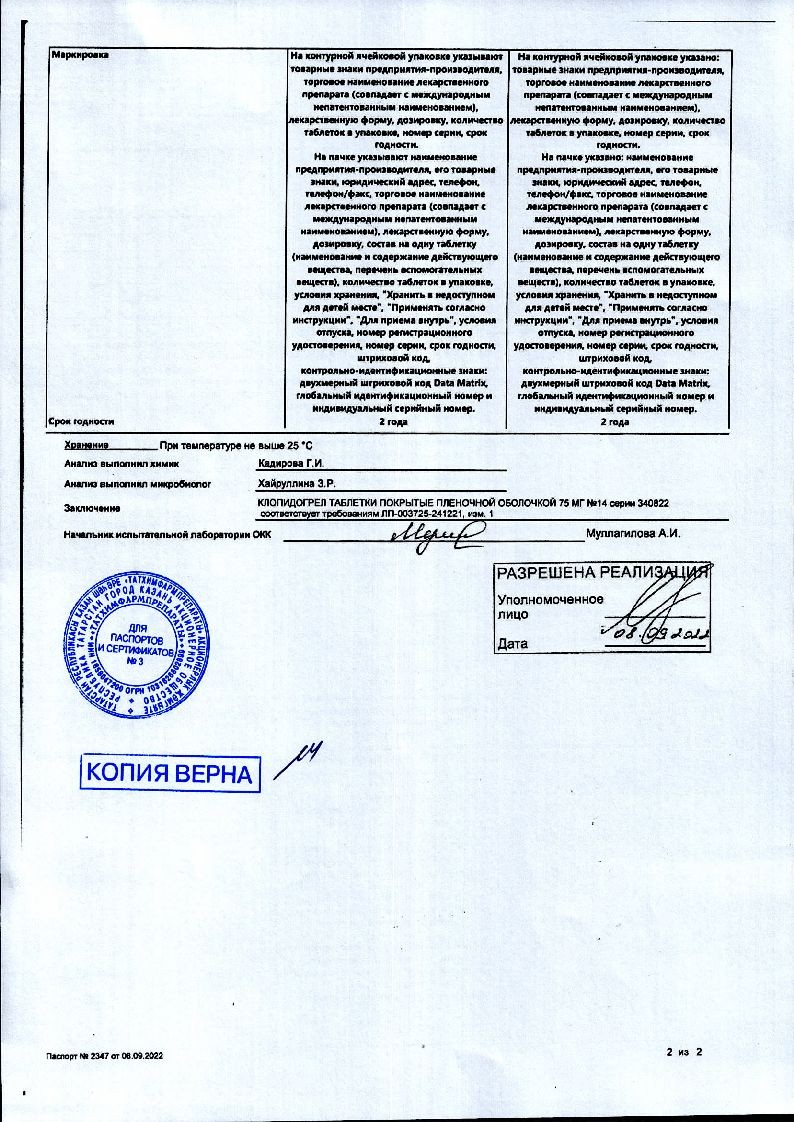 Клопидогрел-Акрихин 75 мг 30 шт таблетки покрытые пленочной оболочкой