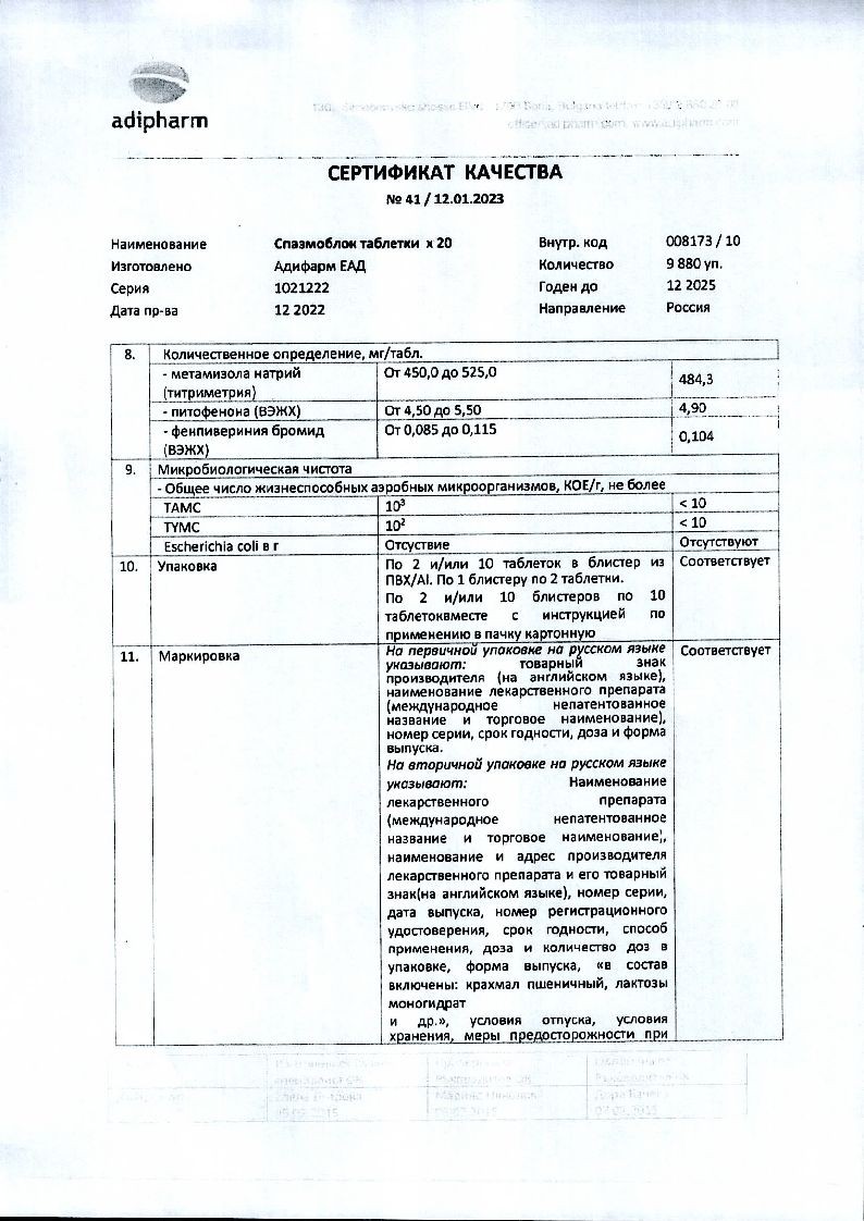 Спазмалгон 20 шт таблетки