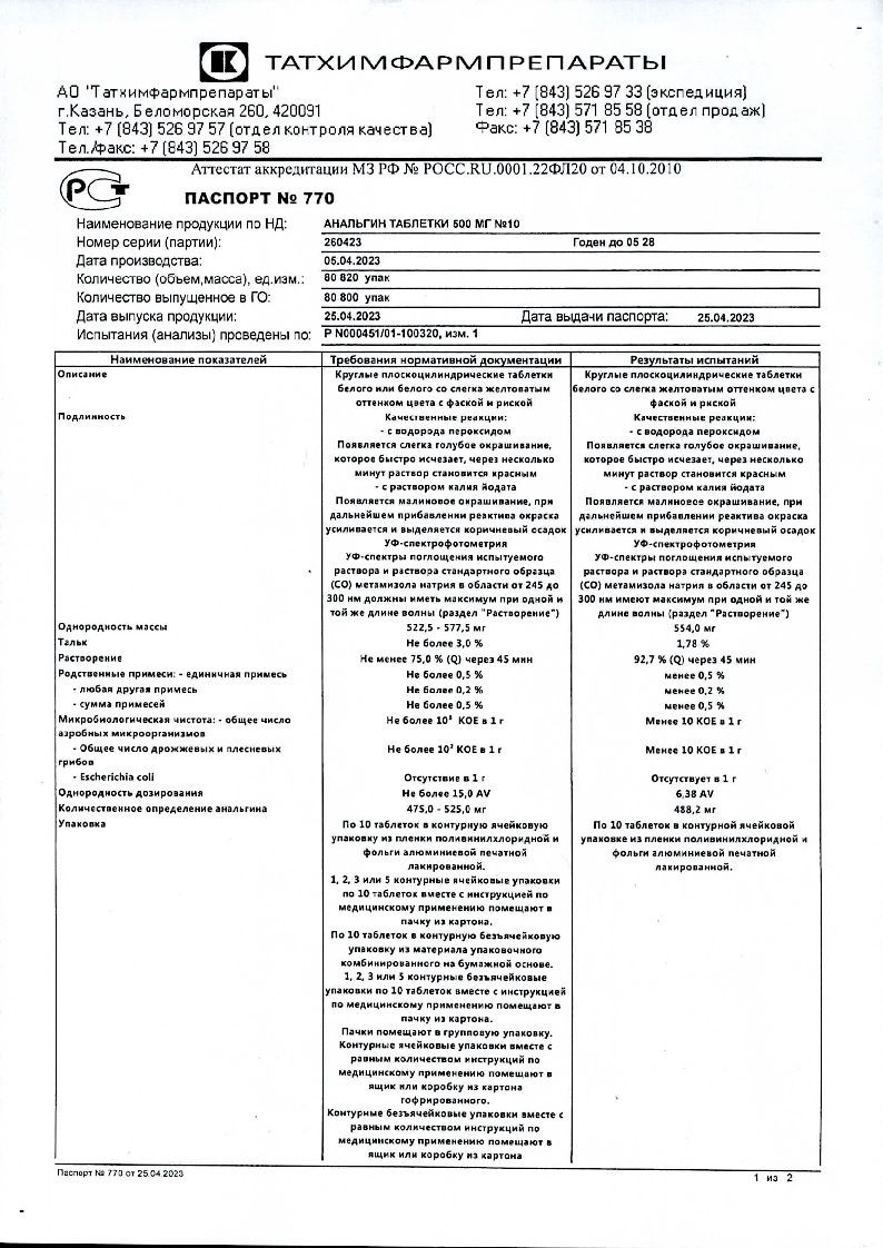 Анальгин 500 мг 10 шт таблетки