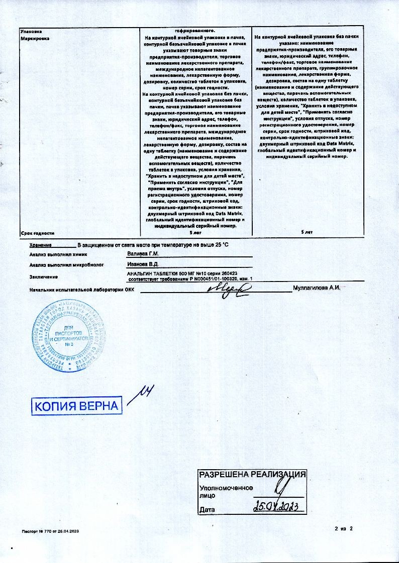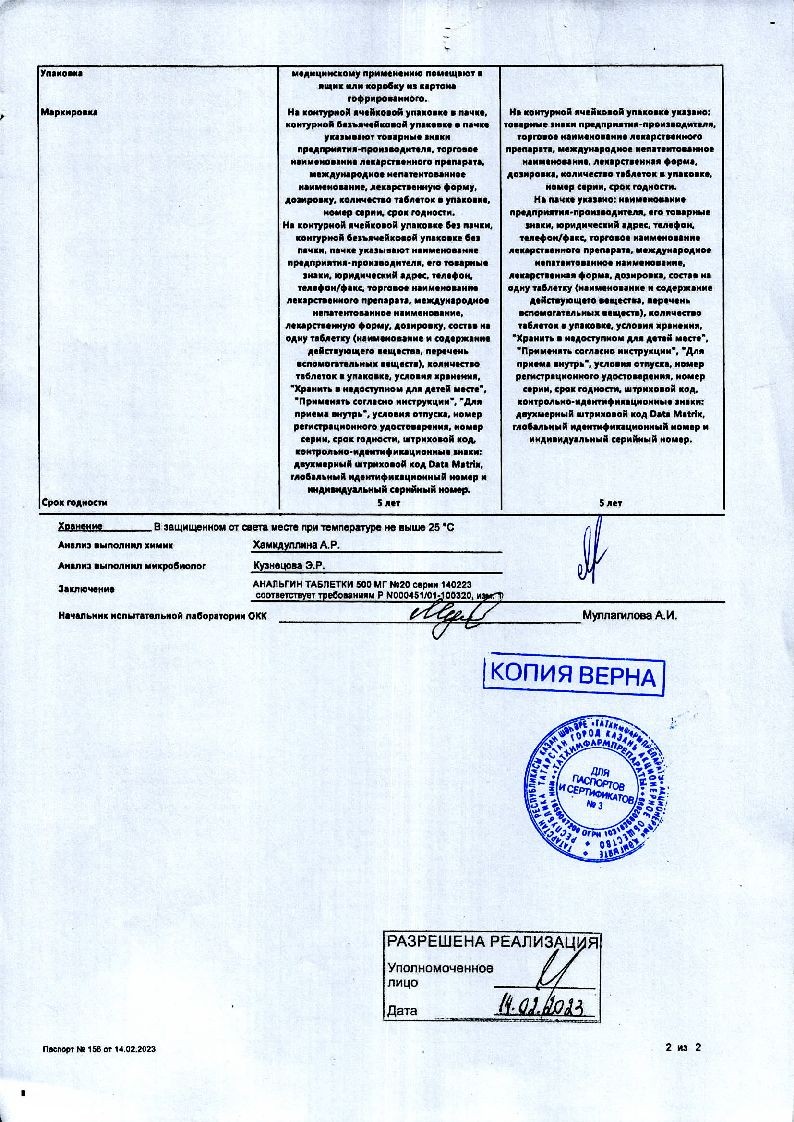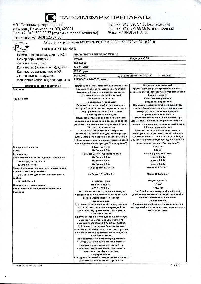 Анальгин 500 мг 20 шт таблетки