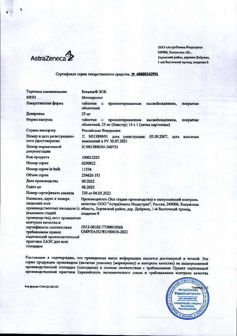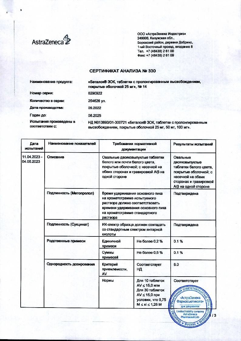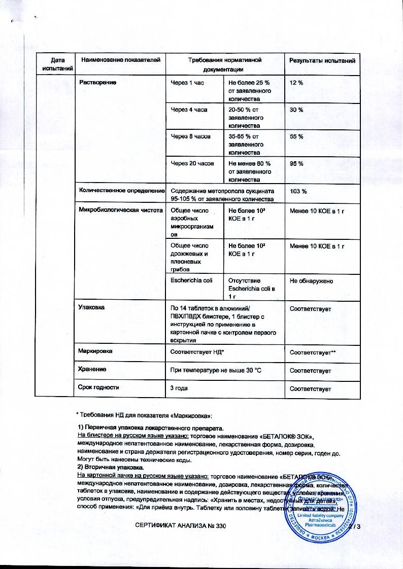 Беталок Зок 25 мг 14 шт таблетки с пролонгированным высвобождением покрытые оболочкой