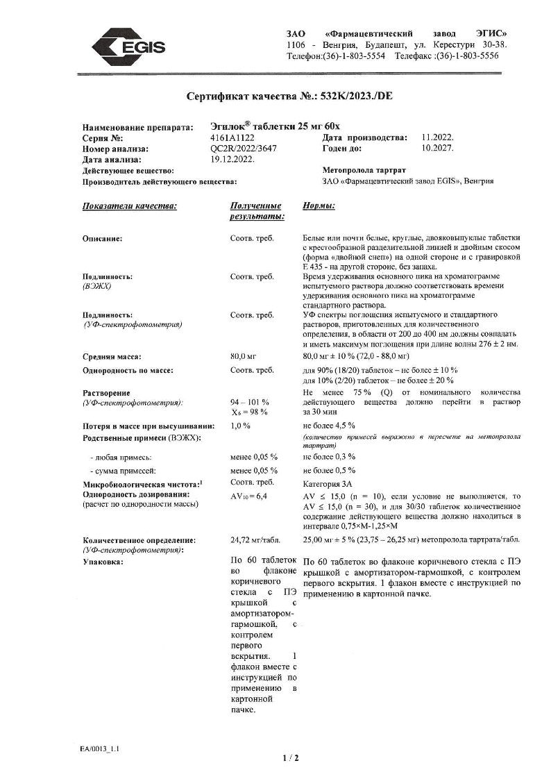 Метопролол-Акрихин 50 мг 60 шт таблетки