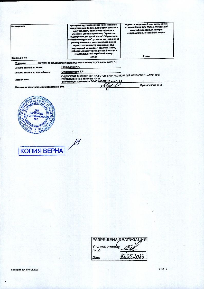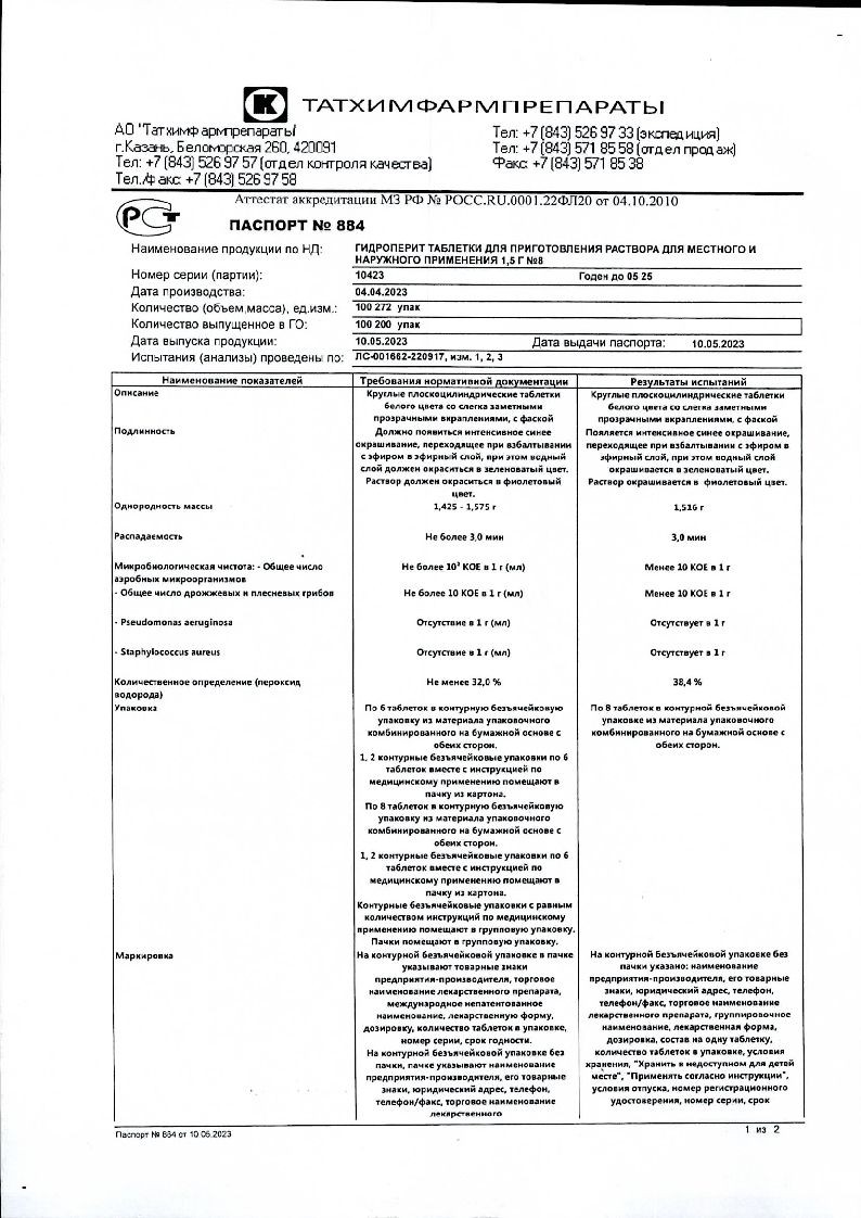 Гидроперит 1,5 г 8 шт таблетки для приготовления раствора для местного и наружного применения