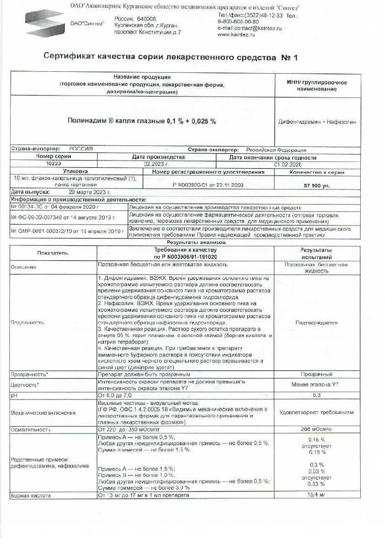 Полинадим 10 мл капли глазные