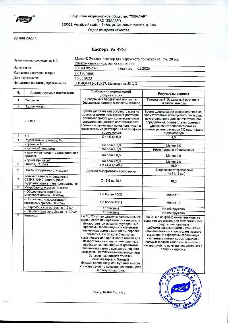 Мизол 1% 20 мл 1 шт раствор для наружного применения