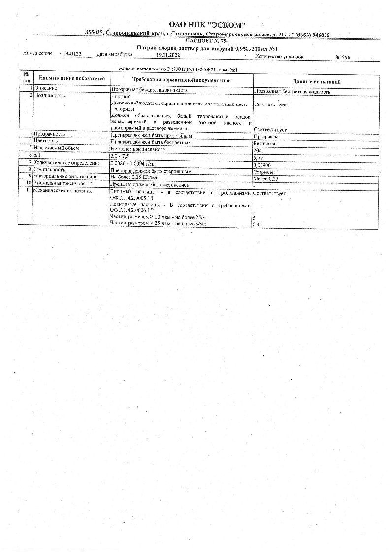 Натрия Хлорид 0,9 % 200 мл 1 шт раствор для инфузий