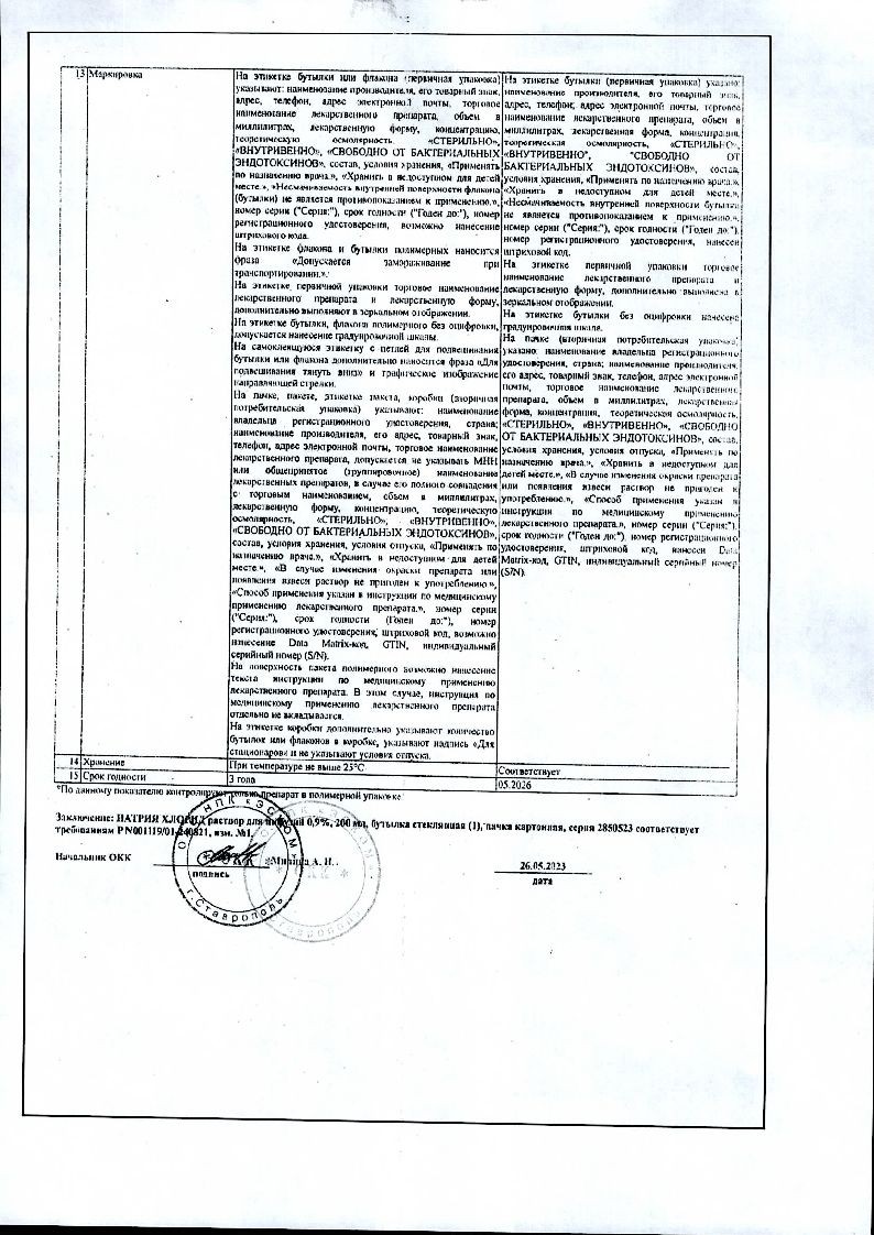 Натрия Хлорид Солофарм 0,9% 200 мл 1 шт раствор для инфузий