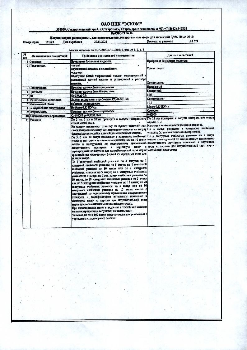 Натрия хлорид 0,9 % 500 мл раствор для инфузий бутылка стекло