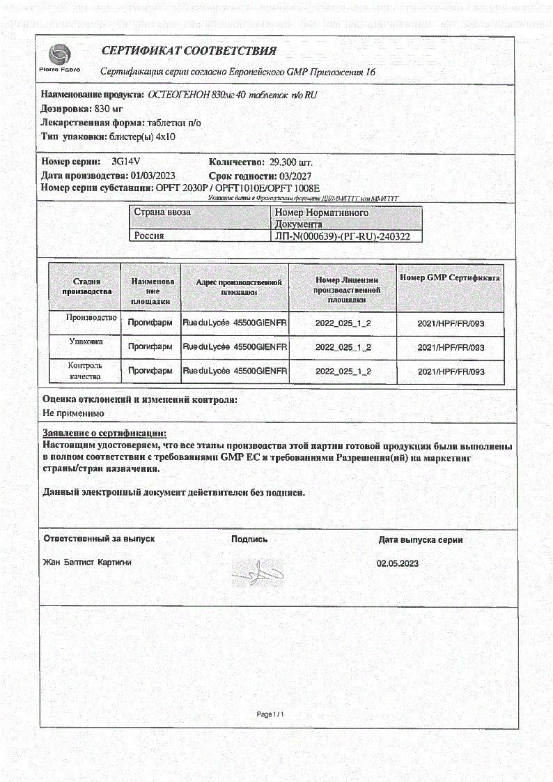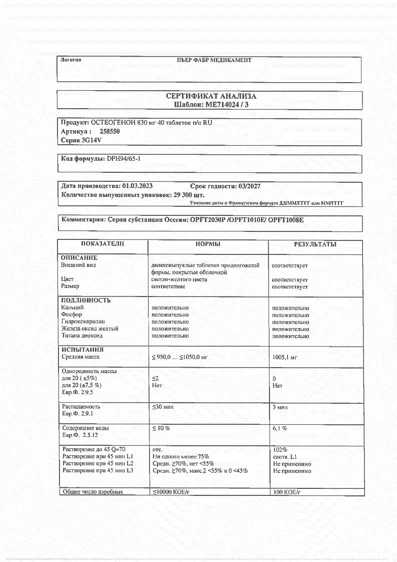 Остеогенон 830 мг 40 шт таблетки покрытые оболочкой