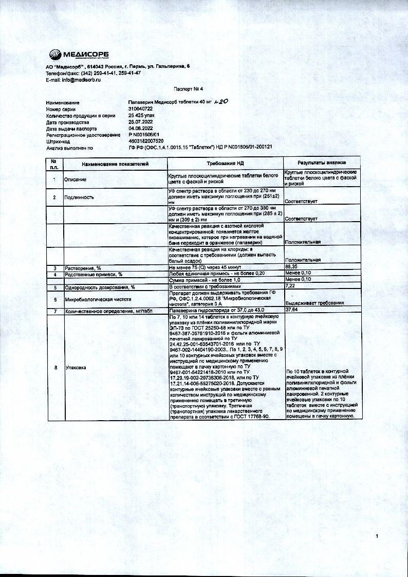 Папаверин 40 мг 20 шт таблетки