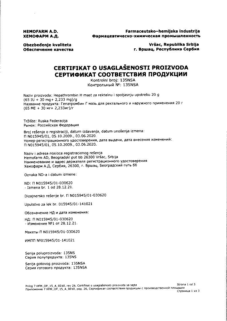 Гепатромбин Г 20 г мазь для наружного и ректального применения + комплект с наконечником